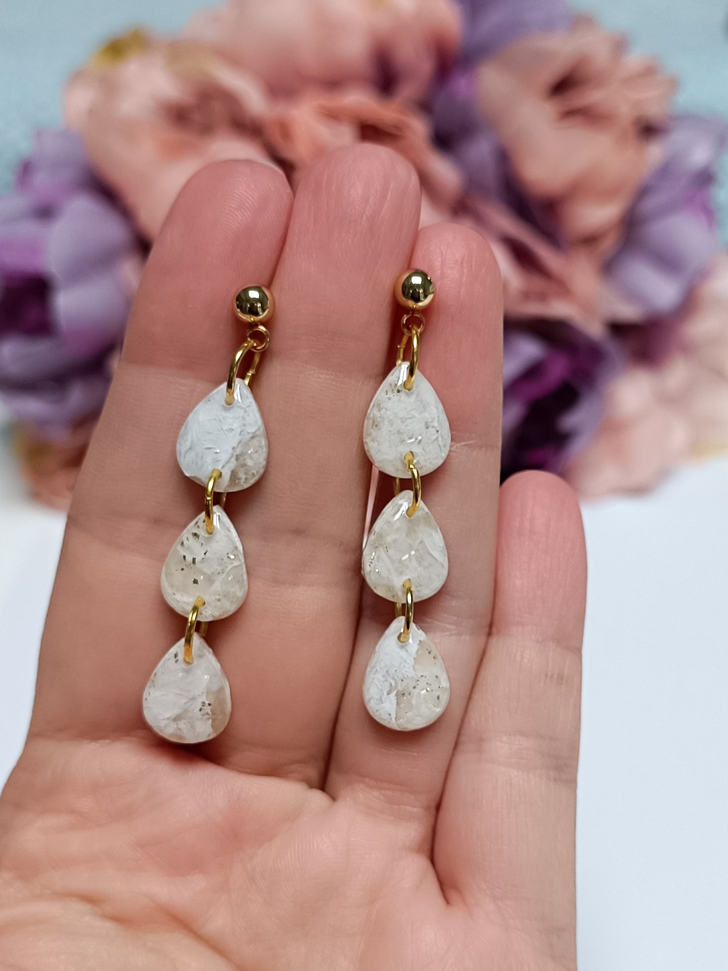 These earrings are made from quality polymer clay. Because of this material they are light and comfortable to wear. Earring have epoxi finish. Material of posts is stainless steel so if you even have sensitive ears you can comfortably wear them.