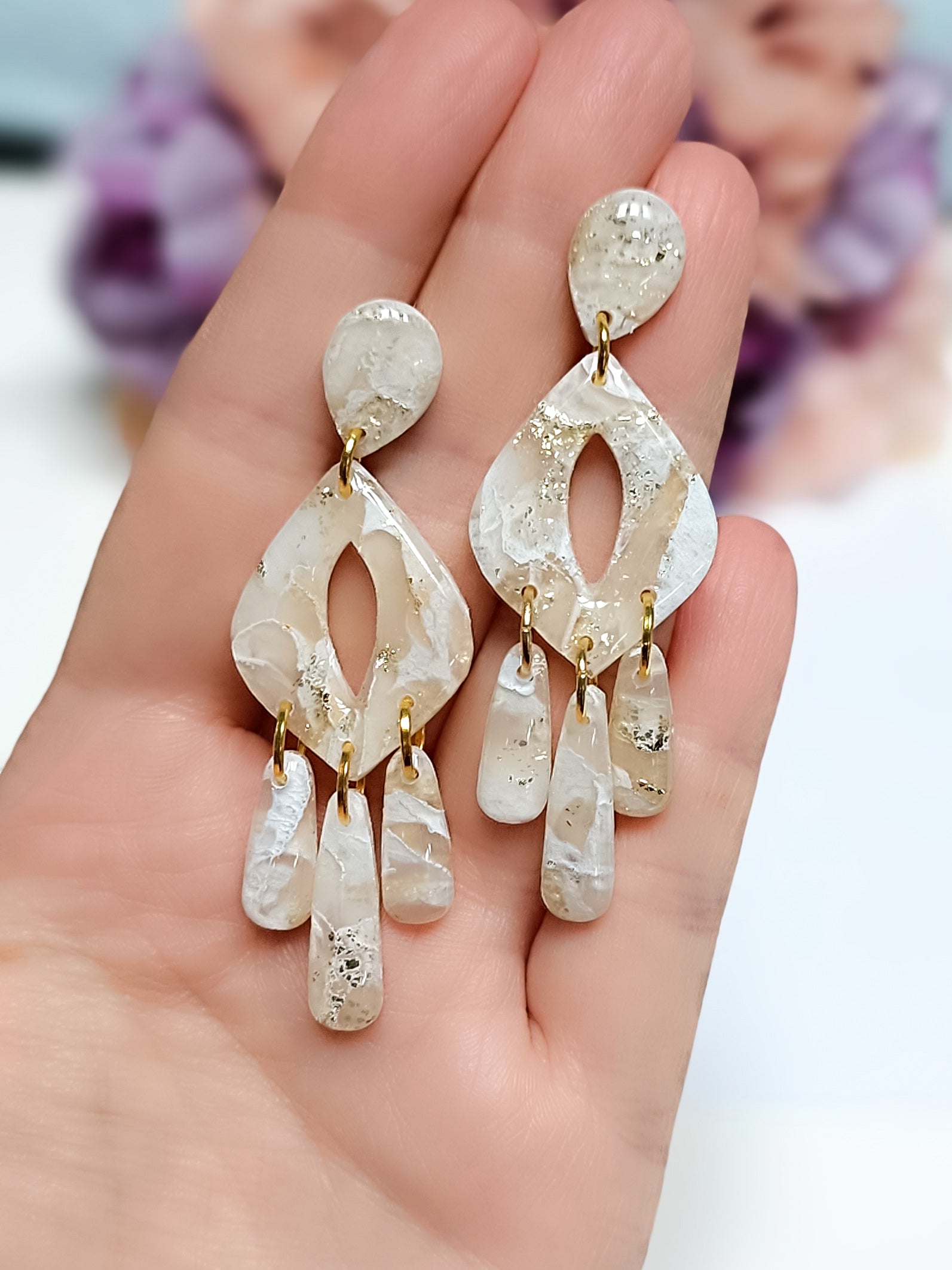 These earrings are made from quality polymer clay. Because of this material they are light and comfortable to wear. Earring have epoxi finish. Material of posts is surgical stainless steel so if you even have sensitive ears you can comfortably wear them.