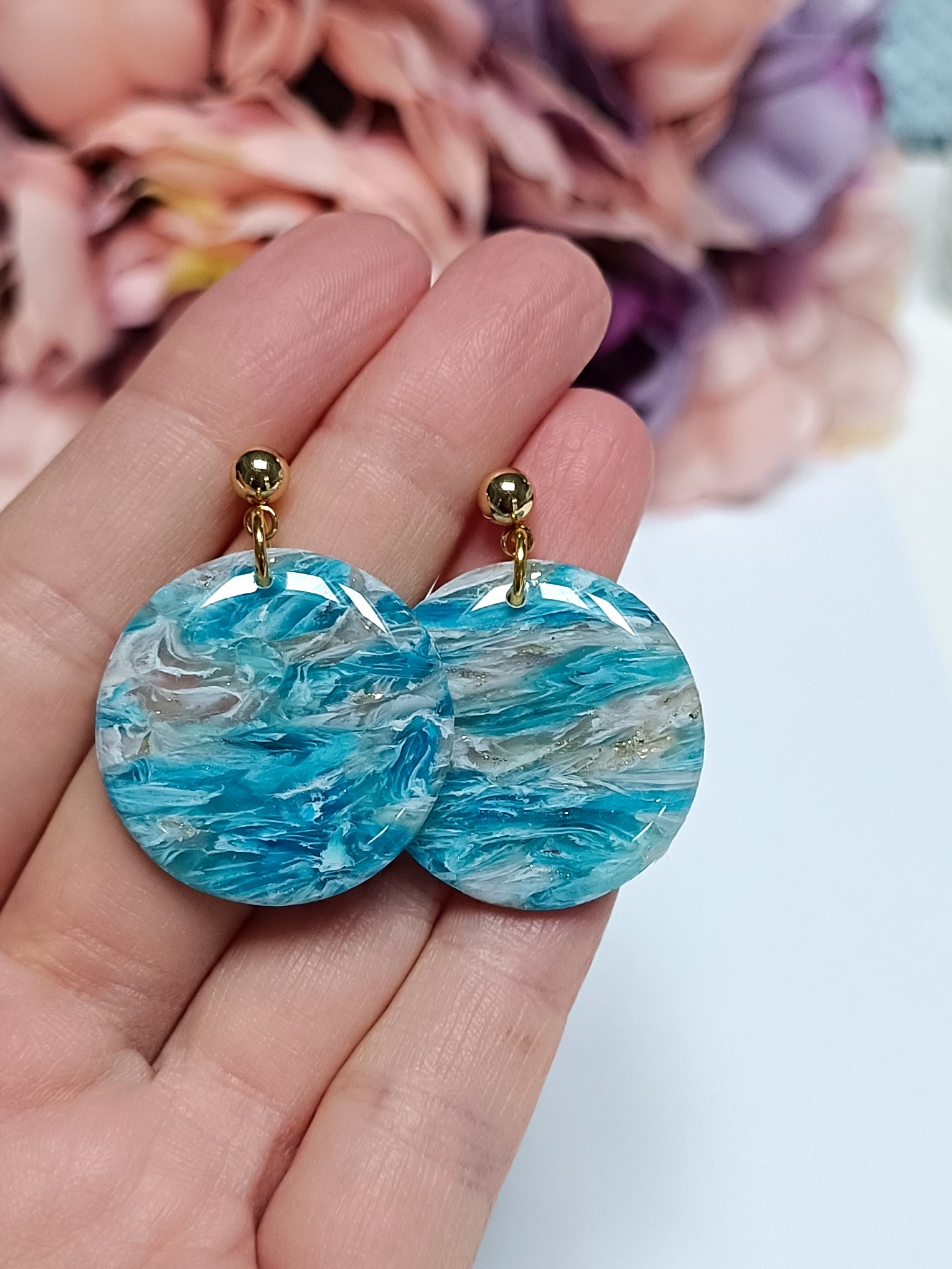 These earrings are made from quality polymer clay. Because of this material they are light and comfortable to wear. Earring have epoxi finish. Material of posts is stainless steel so if you even have sensitive ears you can comfortably wear them.
