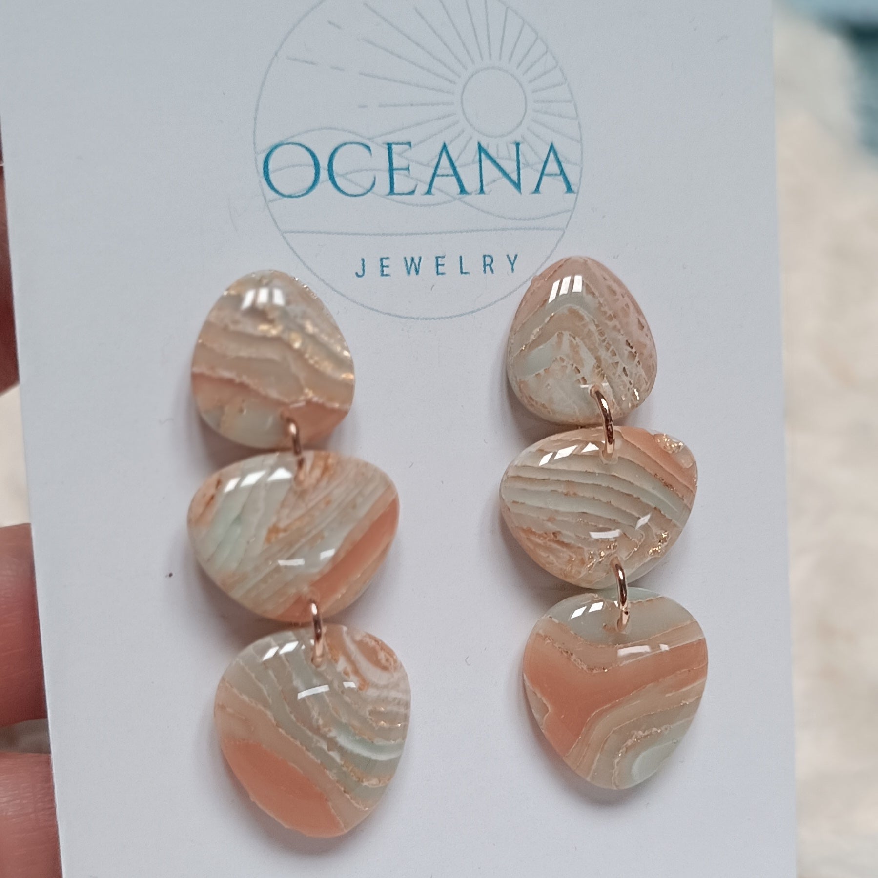 These beauties are inspired by the serene tones of nature. Made with high quality polymer clay they feature soft, natural tones like light beige and mint, reminiscent of serene, earthy hues. The smooth resin finish adds a glossy touch, while the hight-quality stainless stell posts ensure comfort and durability. They are lightweight and versatile and they effortlessly elevate any look with their understated sphistication.