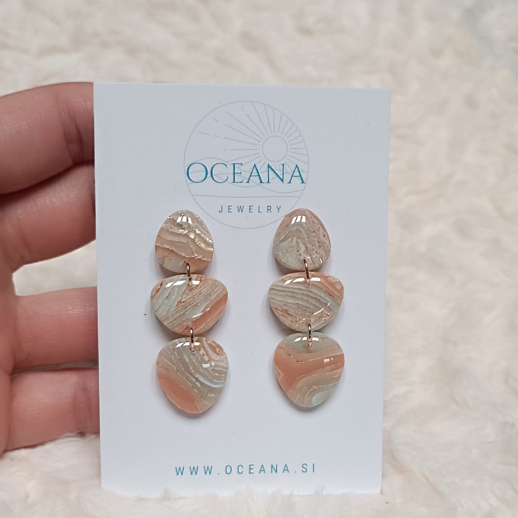Uhani so v nežnih naravnih odtenkih, kot sta bež in meta in spominjajo na mirne zemeljske barve in dodajajo eleganten pridih vsakemu videzu. Prekriti so s smolo, ki jim daje gladek zaključek in sijaj. Zadek je iz nerjavečega jekla in je primeren tudi za občutljiva ušesa. So lahki in vsestranski in nedvomno zlahka popestrijo vsak videz s svojo preprosto eleganco. Narejeni so iz kakovostne polimerne gline