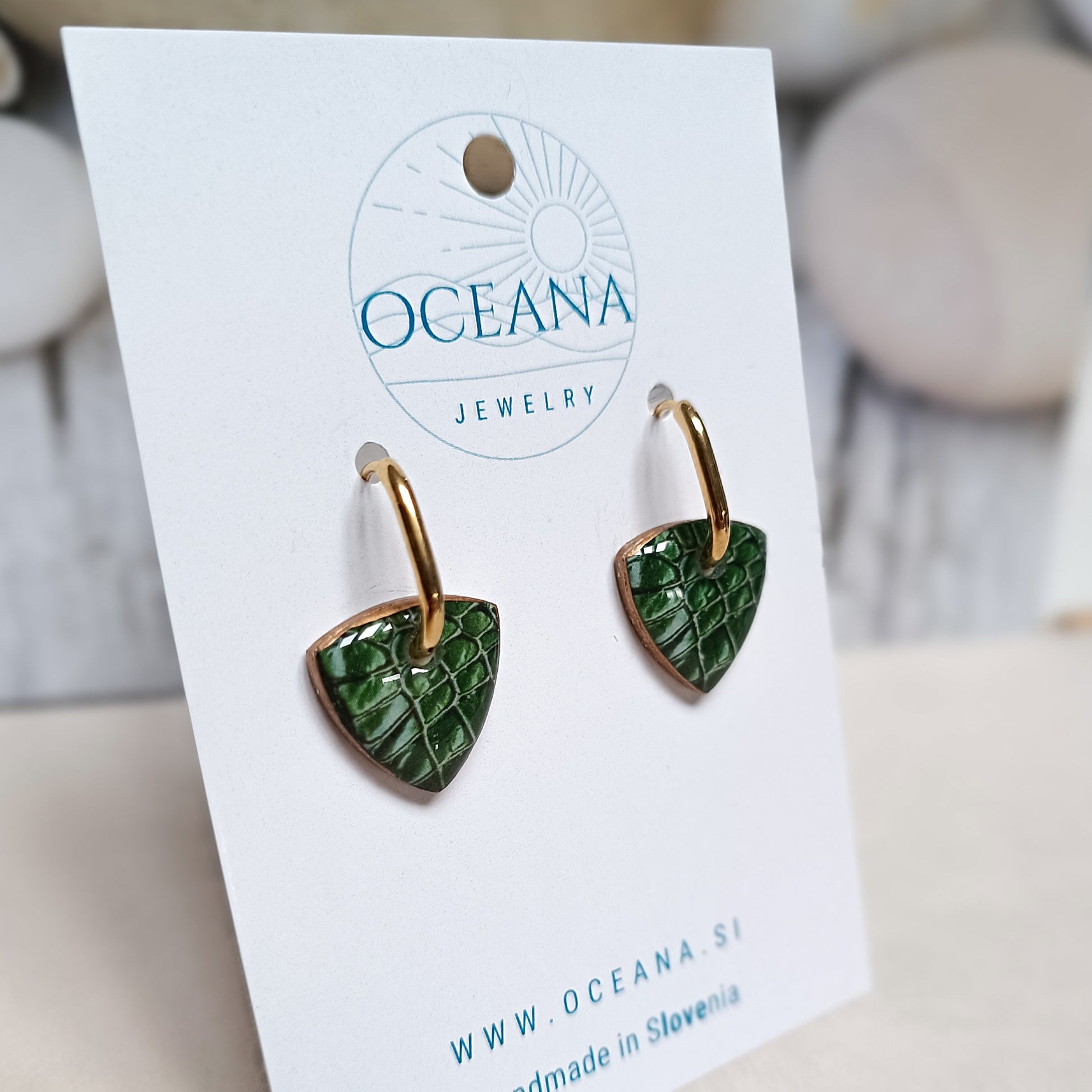 Dodaj svojemu videzu kanček divje elegance z ročno izdelanimi uhani iz polimerne gline. Vsak par je skrbno oblikovan in prekrit z bleščečo plastjo smole za gladek in obstojen izgled.