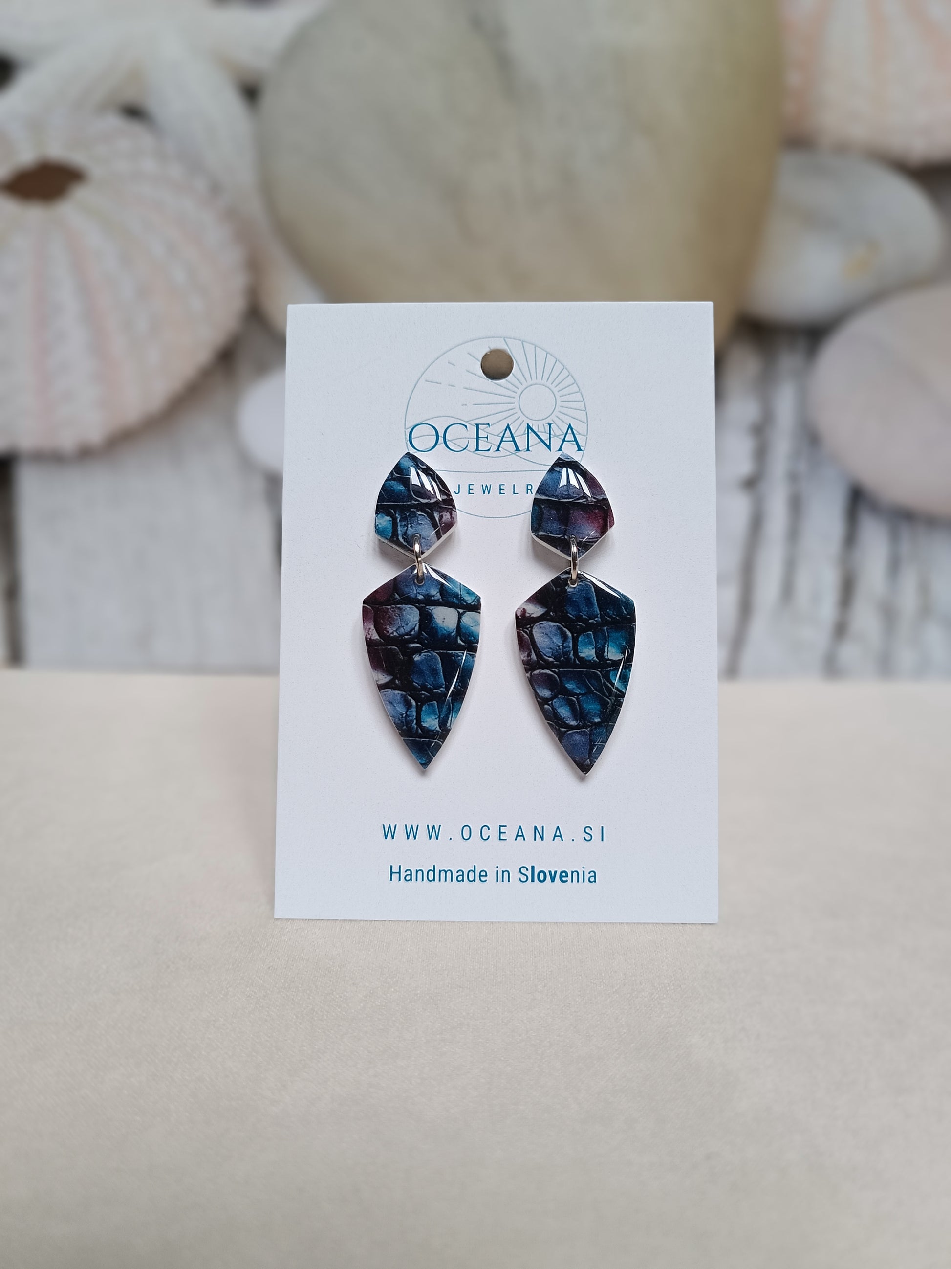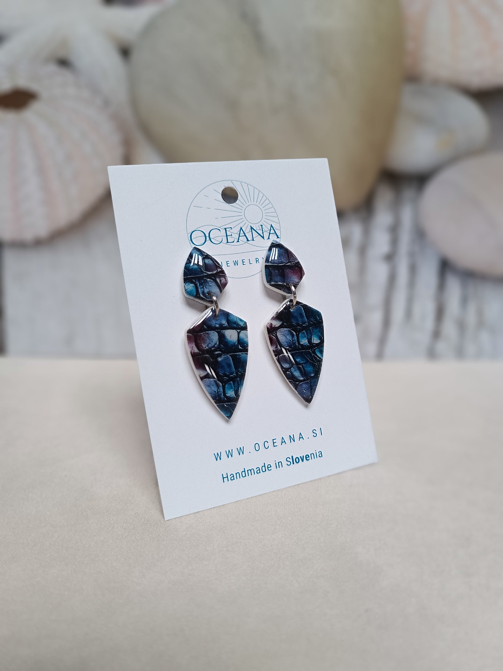 Dodaj svojemu videzu kanček divje elegance z ročno izdelanimi uhani iz polimerne gline. Vsak par je skrbno oblikovan in prekrit z bleščečo plastjo smole za gladek in obstojen izgled.