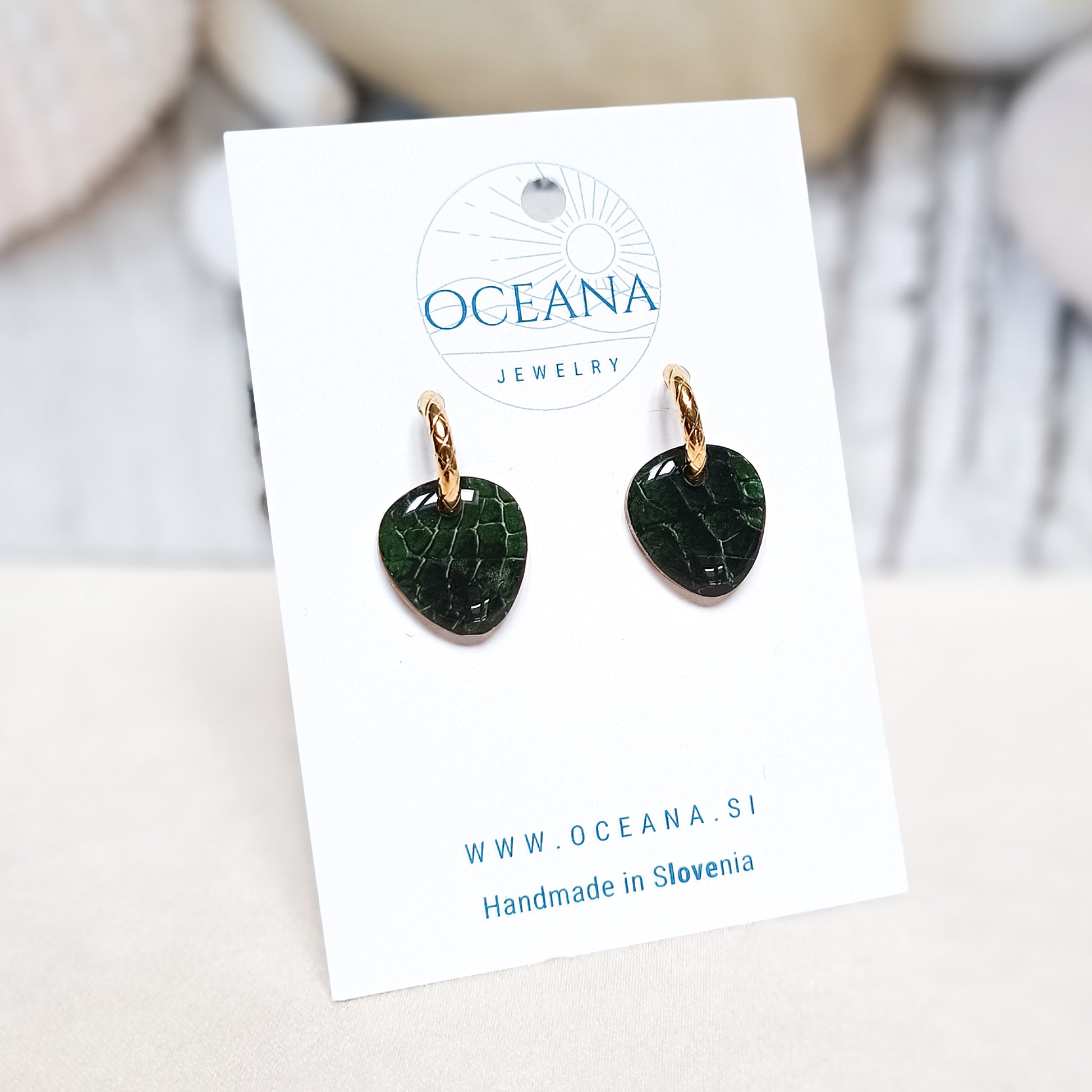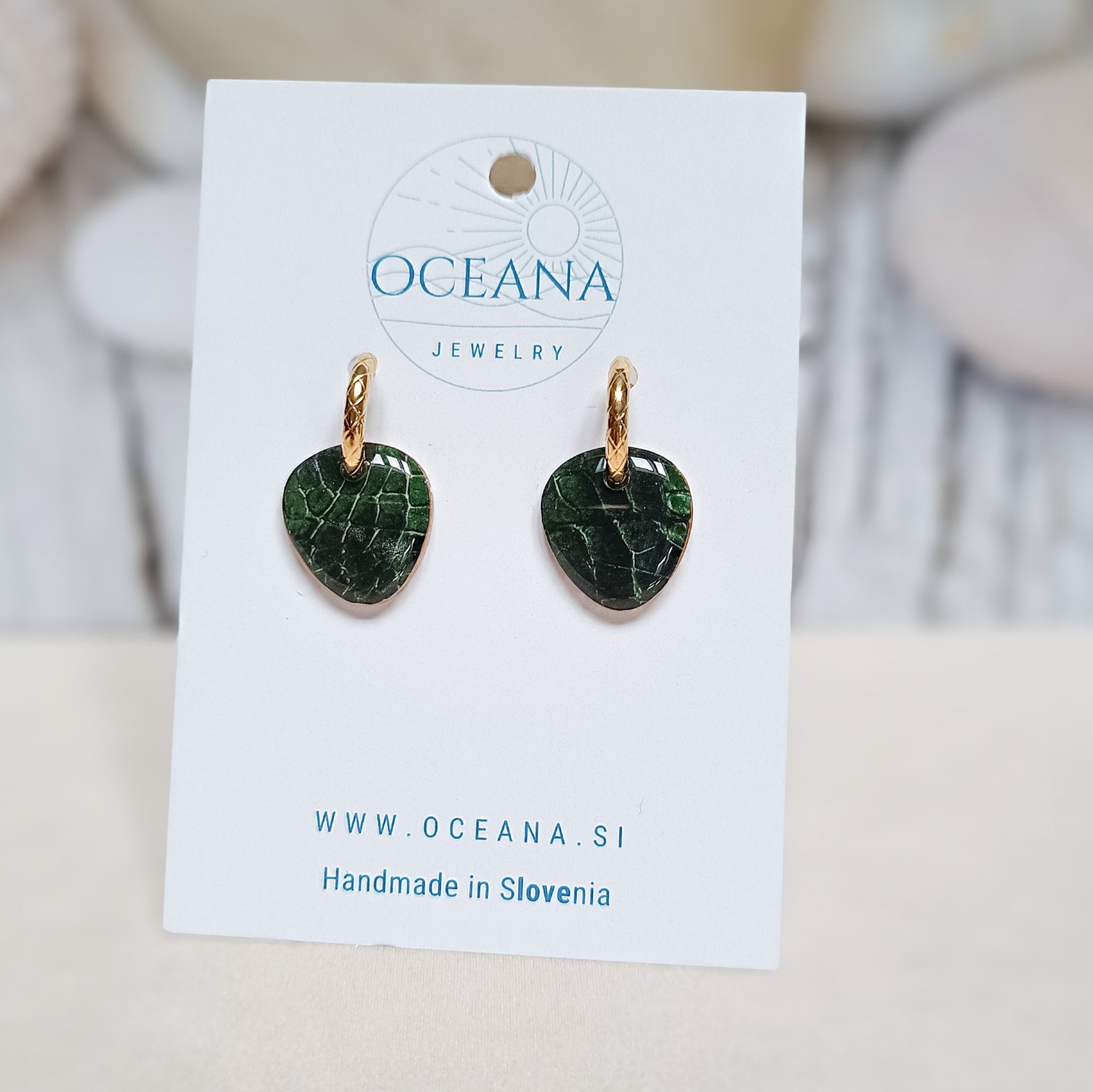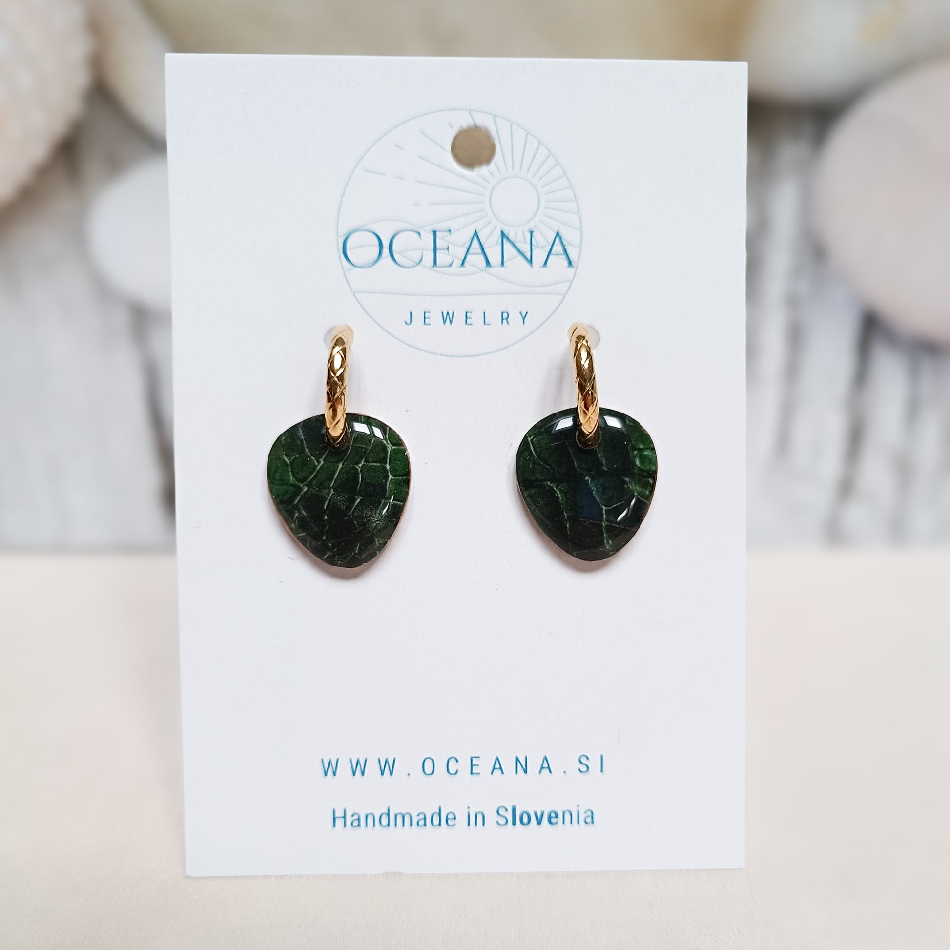 Dodaj svojemu videzu kanček divje elegance z ročno izdelanimi uhani iz polimerne gline. Vsak par je skrbno oblikovan in prekrit z bleščečo plastjo smole za gladek in obstojen izgled.