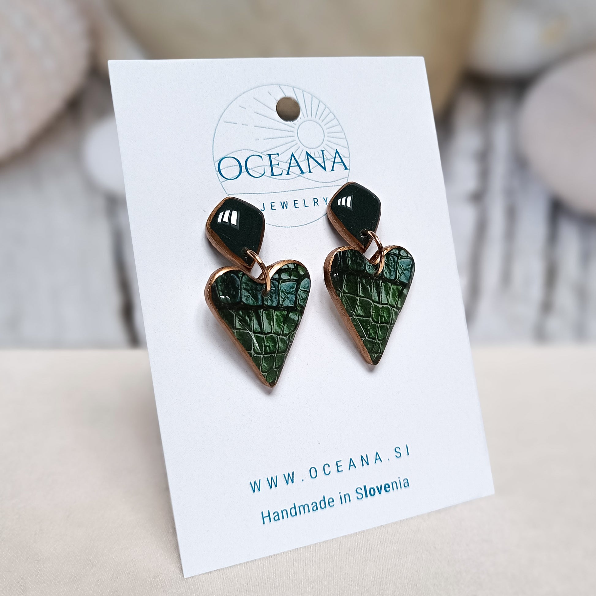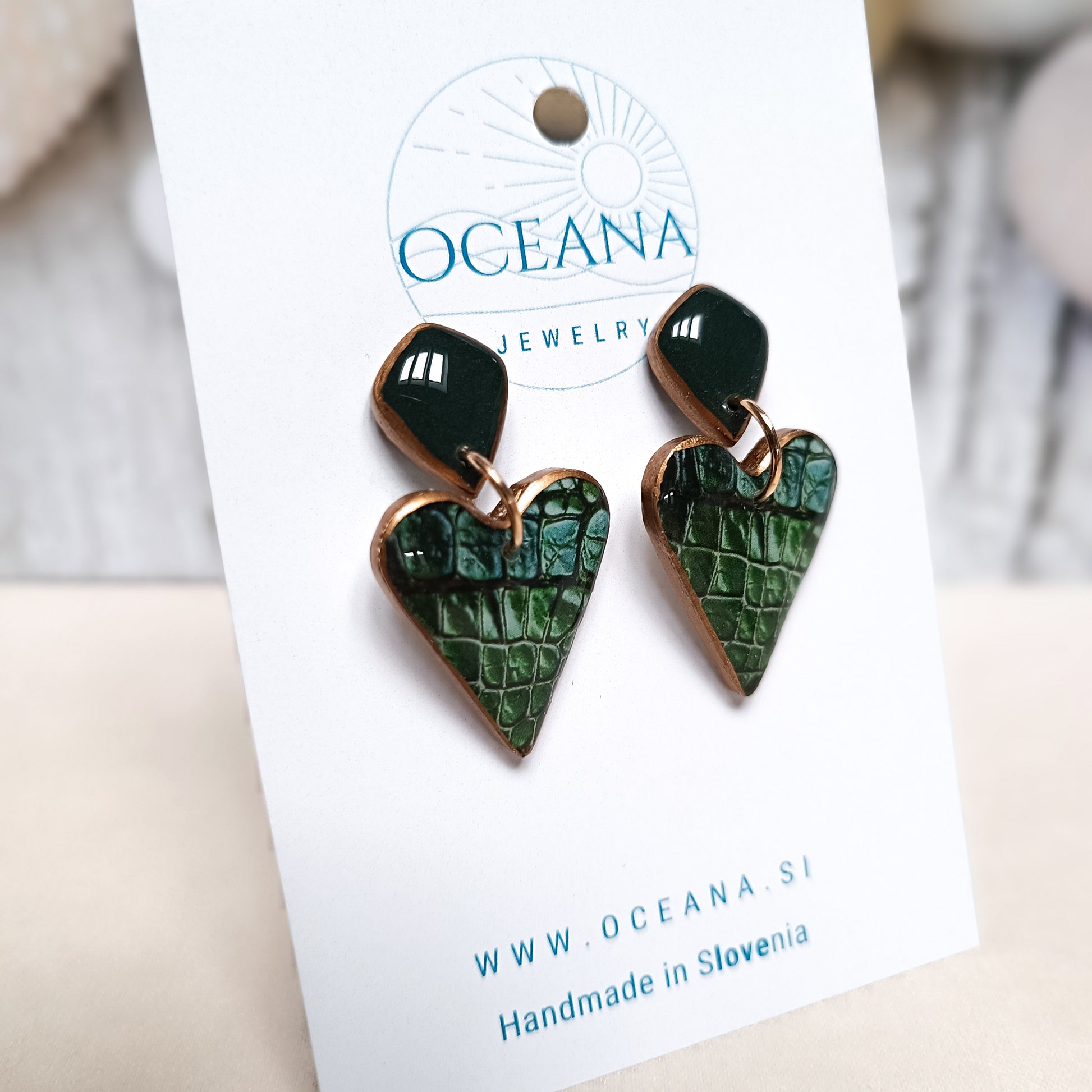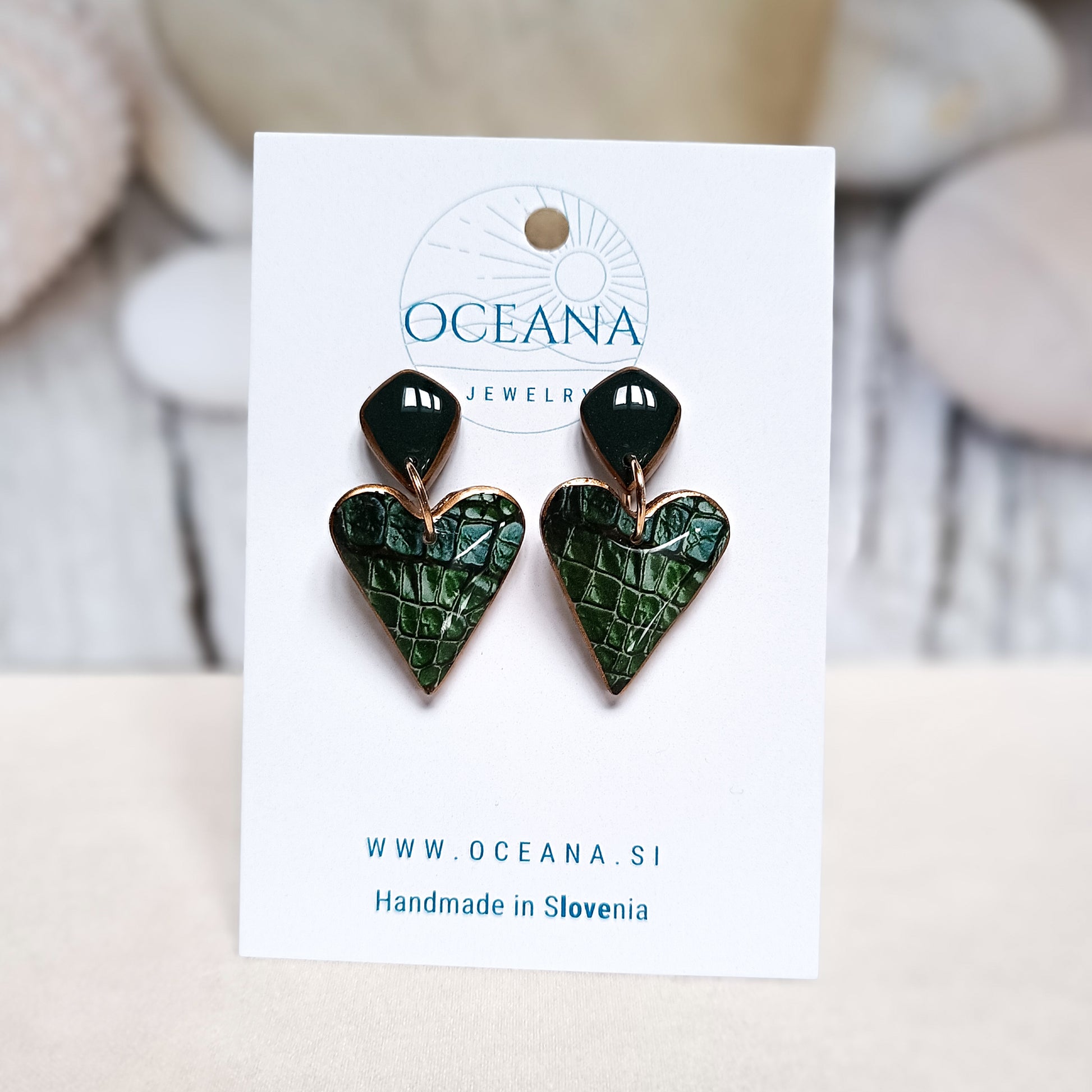 Dodaj svojemu videzu kanček divje elegance z ročno izdelanimi uhani iz polimerne gline. Vsak par je skrbno oblikovan in prekrit z bleščečo plastjo smole za gladek in obstojen izgled.