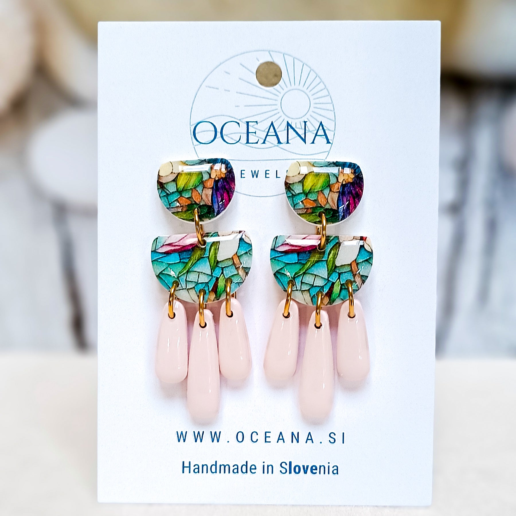 Dodaj kanček barve svojemu dnevu! Uhančki so izdelani iz kakovostne polimerne gline in so zelo lahki, preliti so s smolo, ki jim daje sijaj in večjo obstojnost. Zatič je iz nerjavečega jekla.