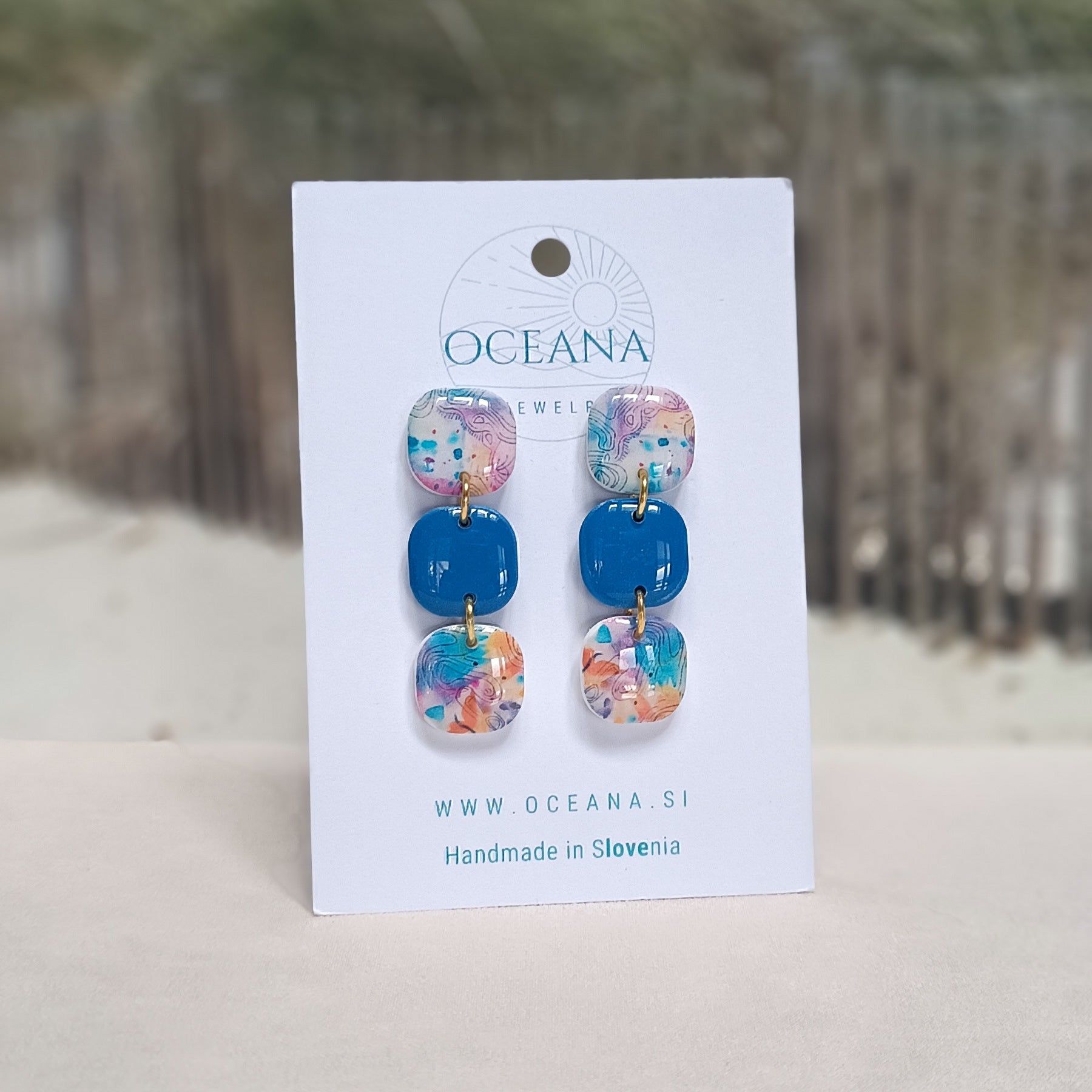 Dodaj kanček barve svojemu dnevu! Uhančki so izdelani iz kakovostne polimerne gline in so zelo lahki, preliti so s smolo, ki jim daje sijaj in večjo obstojnost. Zatič je iz kirurškega jekla.