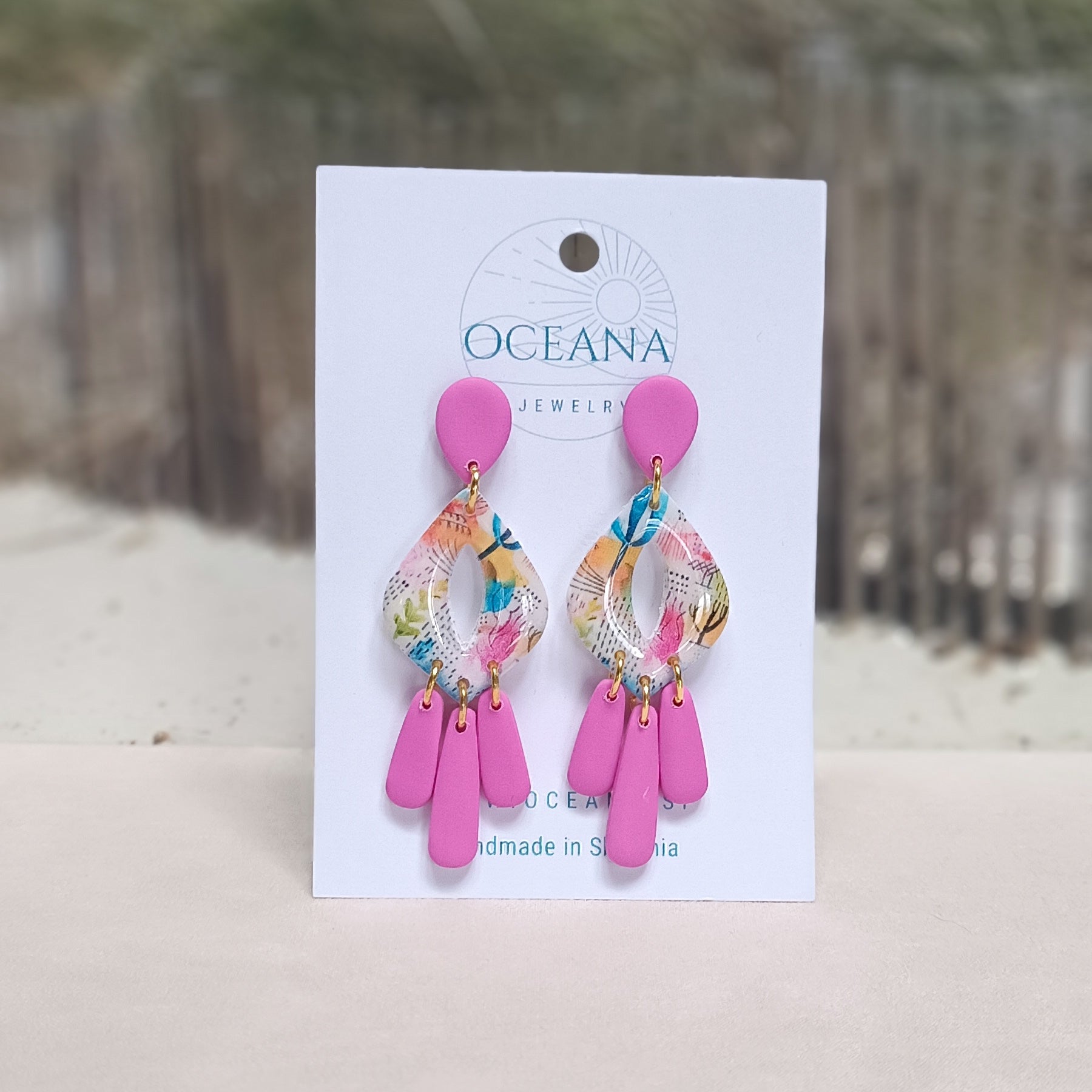 Dodaj kanček barve svojemu dnevu! Uhančki so izdelani iz kakovostne polimerne gline in so zelo lahki, preliti so s smolo, ki jim daje sijaj in večjo obstojnost. Zatič je iz kirurškega jekla.