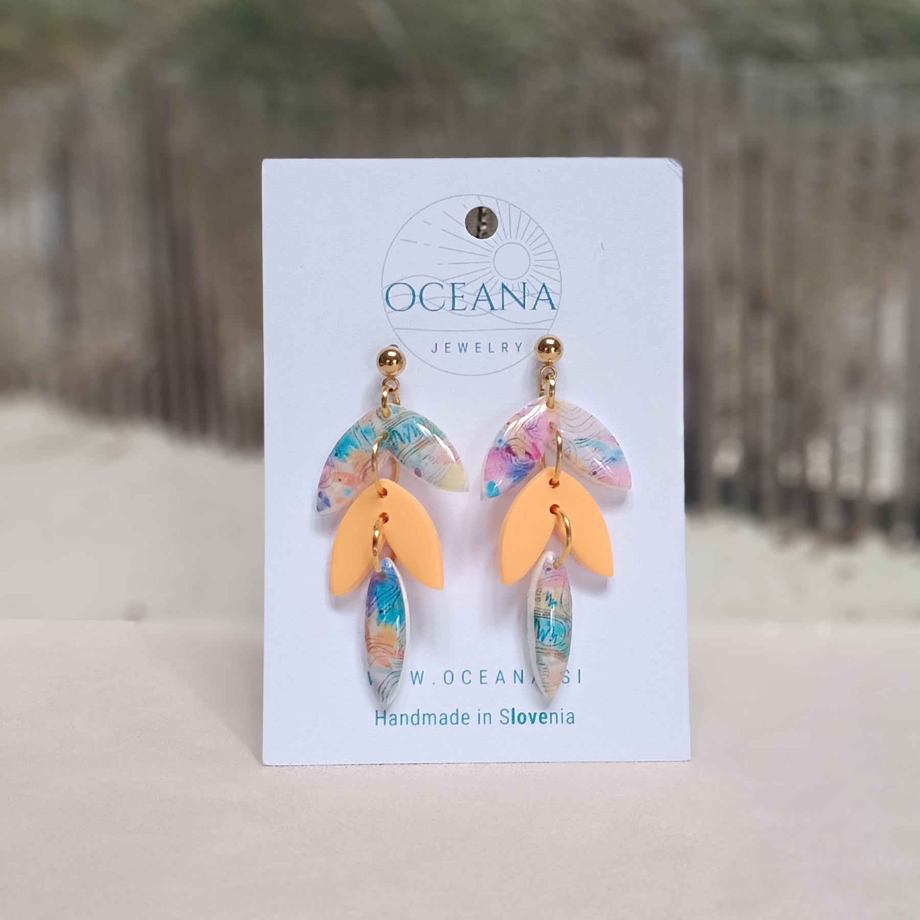 Dodaj kanček barve svojemu dnevu! Uhančki so izdelani iz kakovostne polimerne gline in so zelo lahki, preliti so s smolo, ki jim daje sijaj in večjo obstojnost. Zatič je iz nerjavečega jekla.
