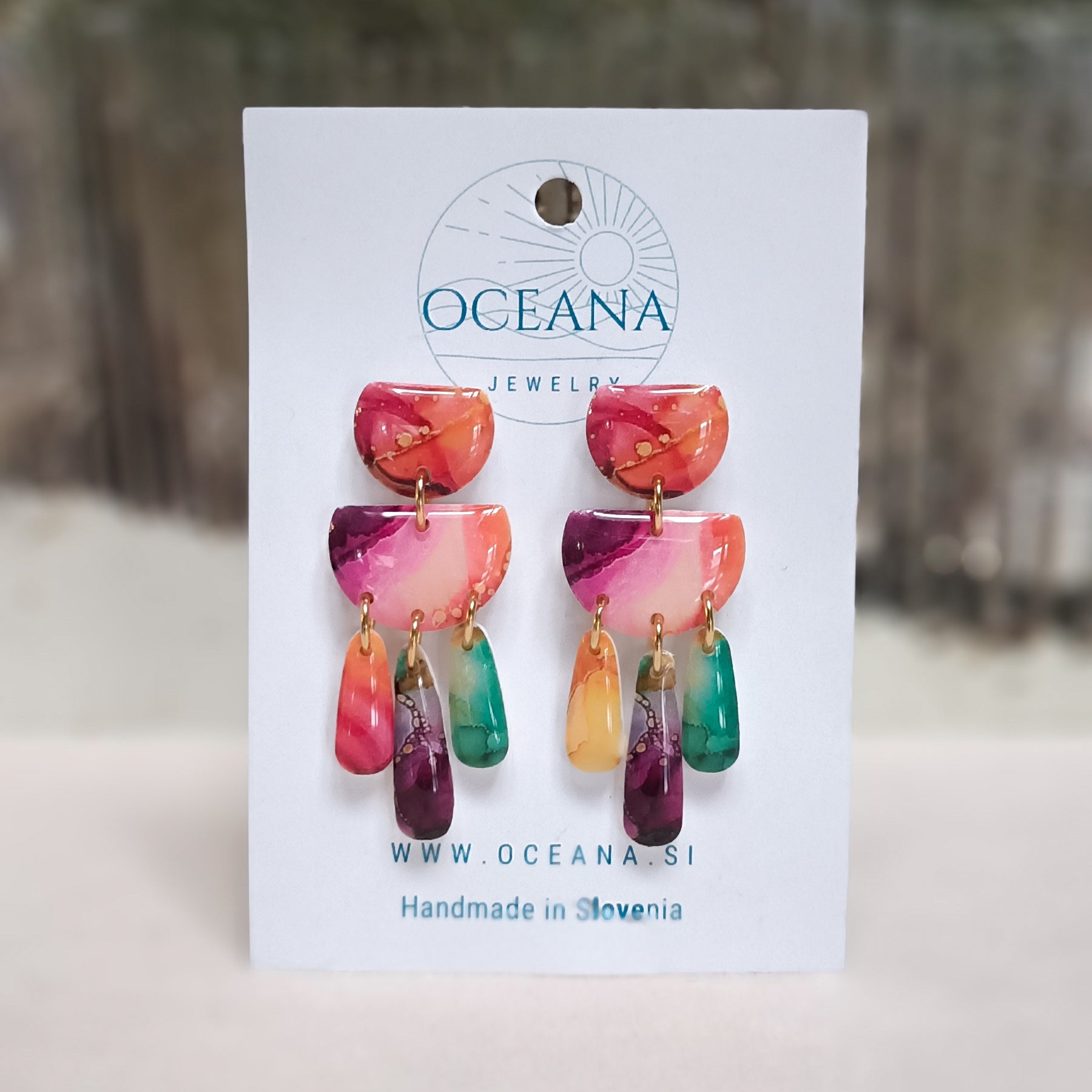 Dodaj kanček barve svojemu dnevu! Uhančki so izdelani iz kakovostne polimerne gline in so zelo lahki, preliti so s smolo, ki jim daje sijaj in večjo obstojnost. Zatič je iz kirurškega jekla.