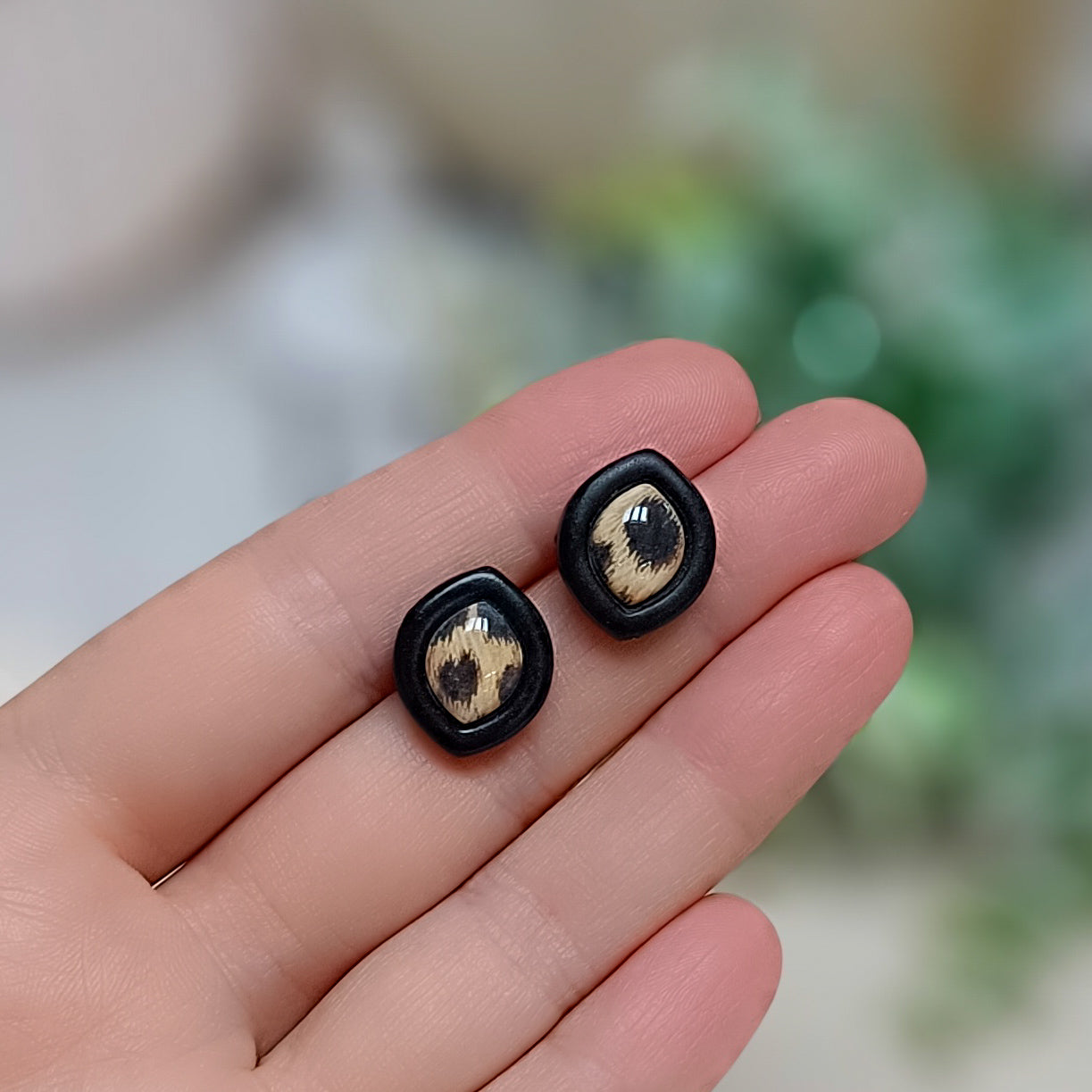 Add a touch of wild charm to your look with these handmade polymer clay earrings. Each pair is carefully crafted and covered with a glossy layer of resin for a smooth and long lasting finish.