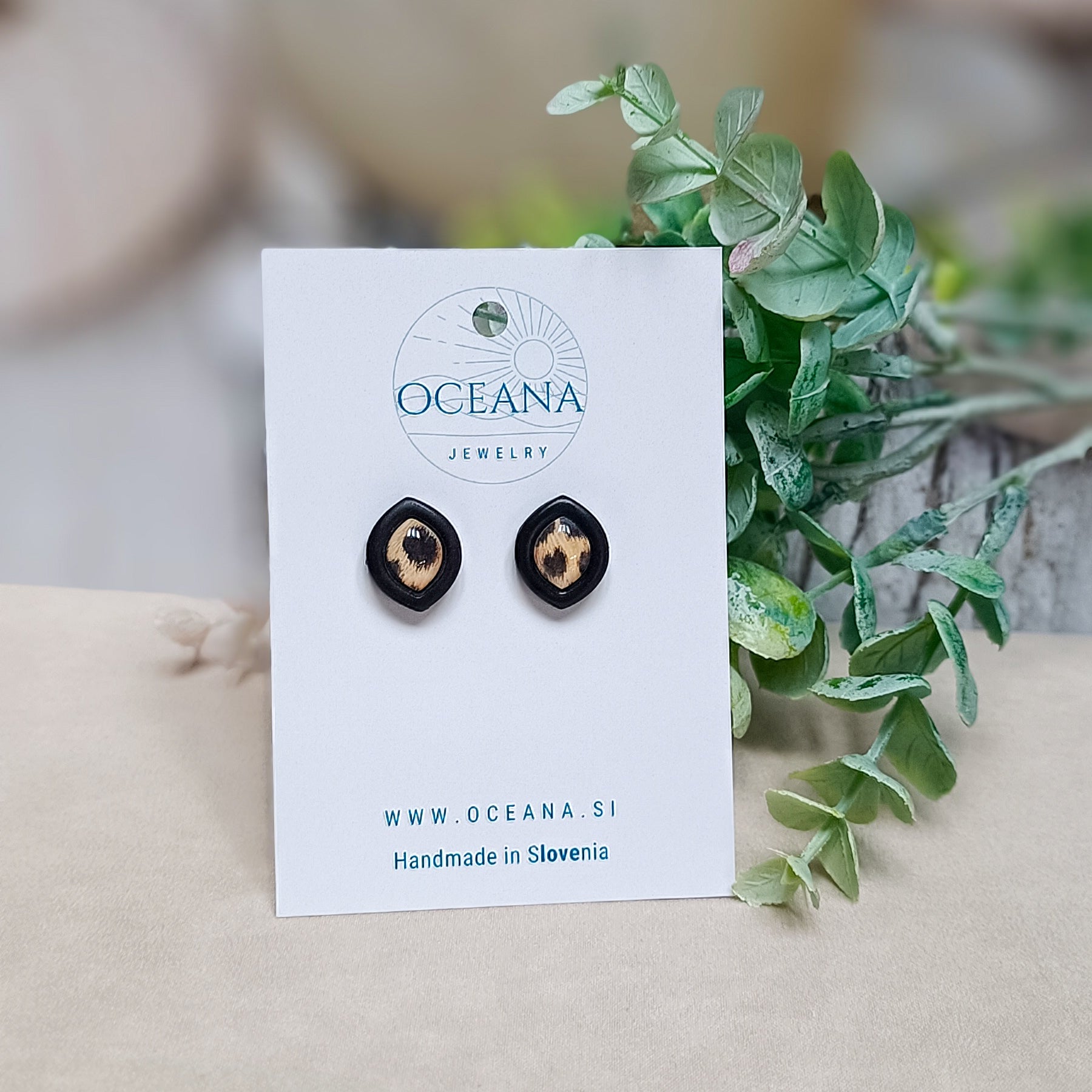 Dodaj svojemu videzu kanček divje elegance z ročno izdelanimi uhani iz polimerne gline. Vsak par je skrbno oblikovan in prekrit z bleščečo plastjo smole za gladek in obstojen izgled.