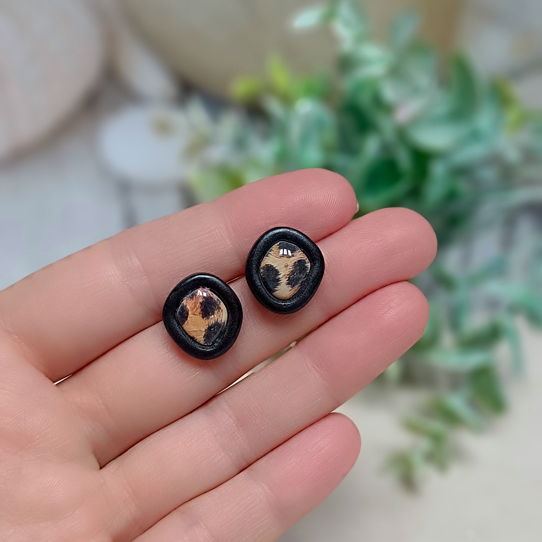 Add a touch of wild charm to your look with these handmade polymer clay earrings. Each pair is carefully crafted and covered with a glossy layer of resin for a smooth and long lasting finish.