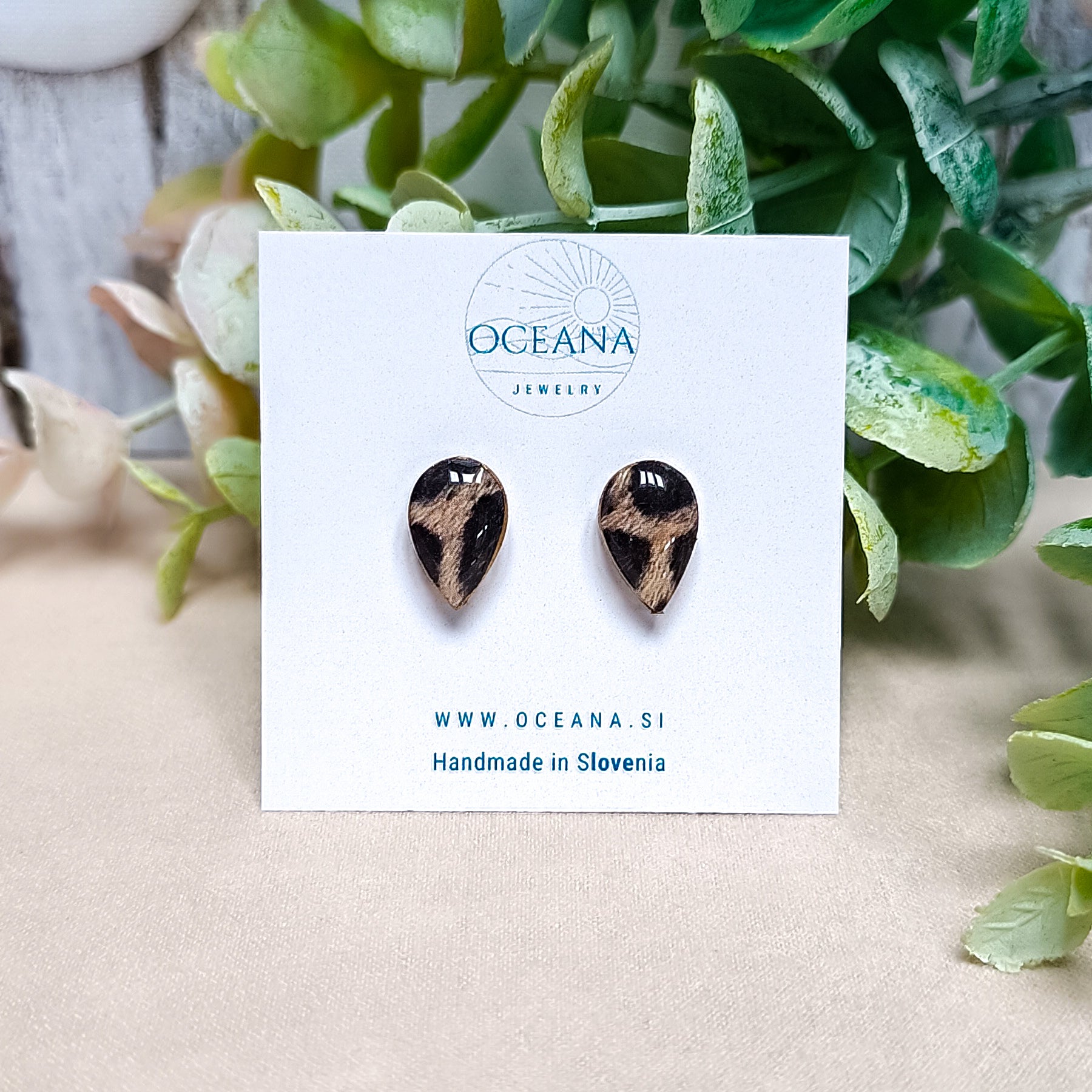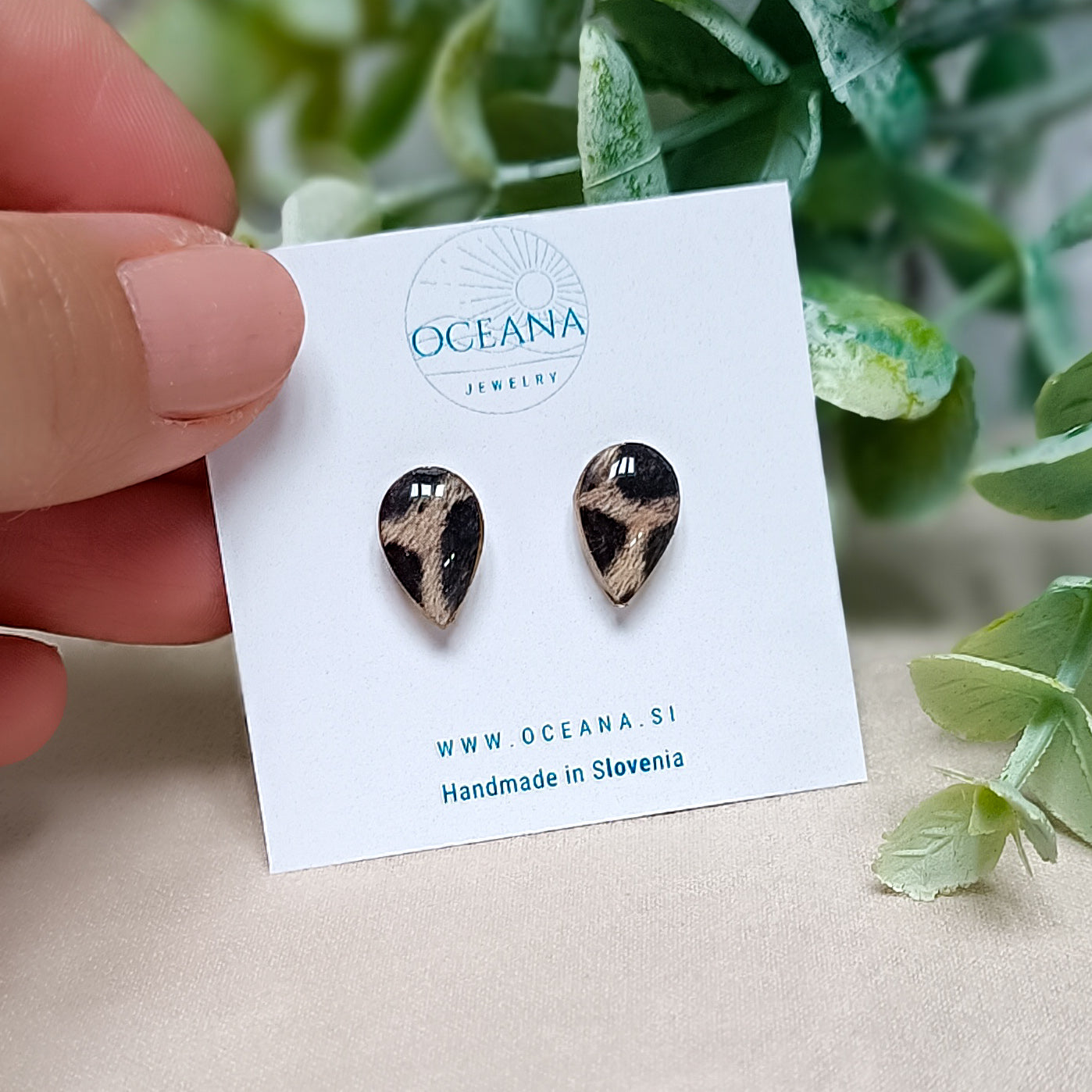 Dodaj svojemu videzu kanček divje elegance z ročno izdelanimi uhani iz polimerne gline. Vsak par je skrbno oblikovan in prekrit z bleščečo plastjo smole za gladek in obstojen izgled.
