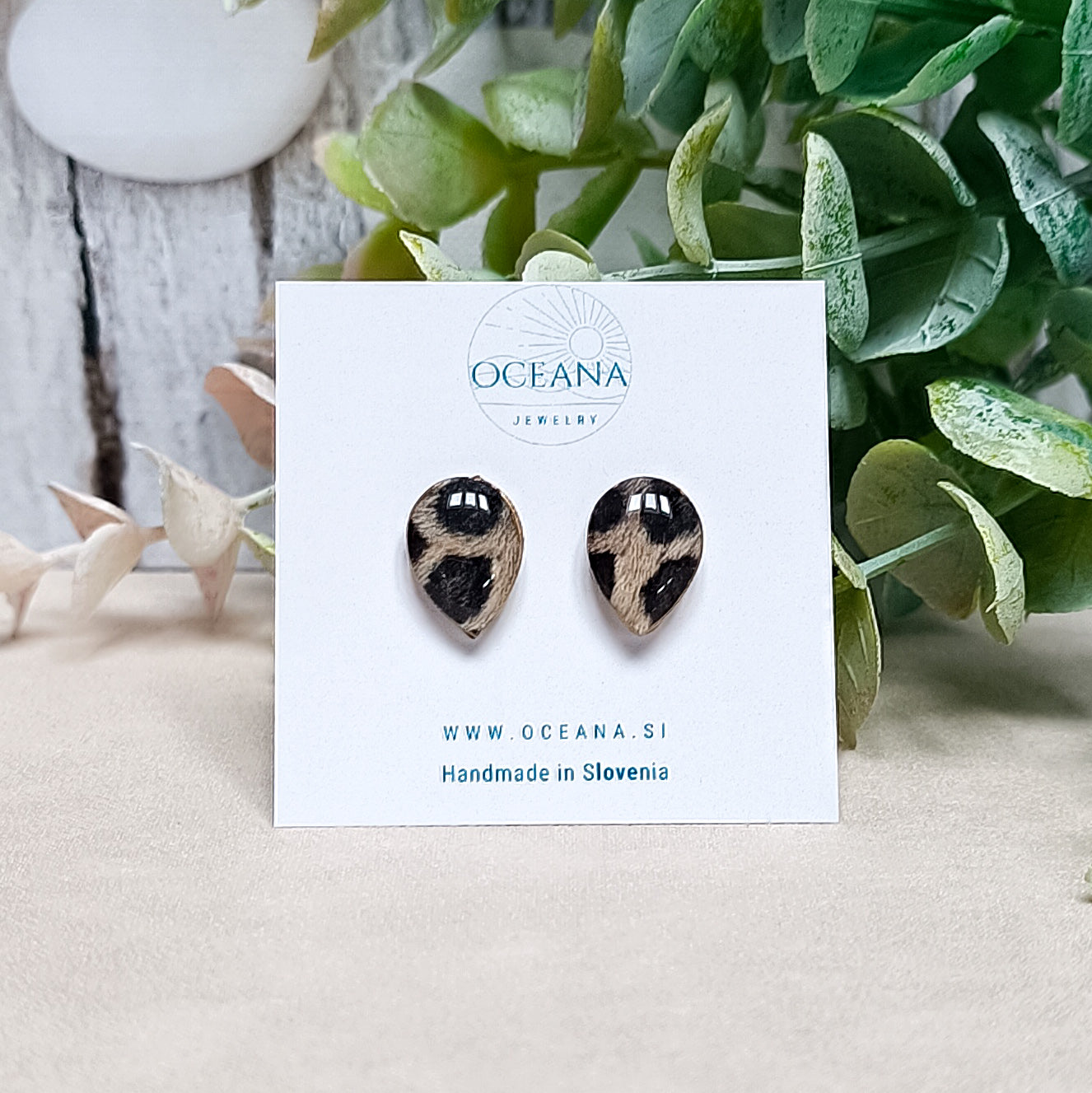 Dodaj svojemu videzu kanček divje elegance z ročno izdelanimi uhani iz polimerne gline. Vsak par je skrbno oblikovan in prekrit z bleščečo plastjo smole za gladek in obstojen izgled.