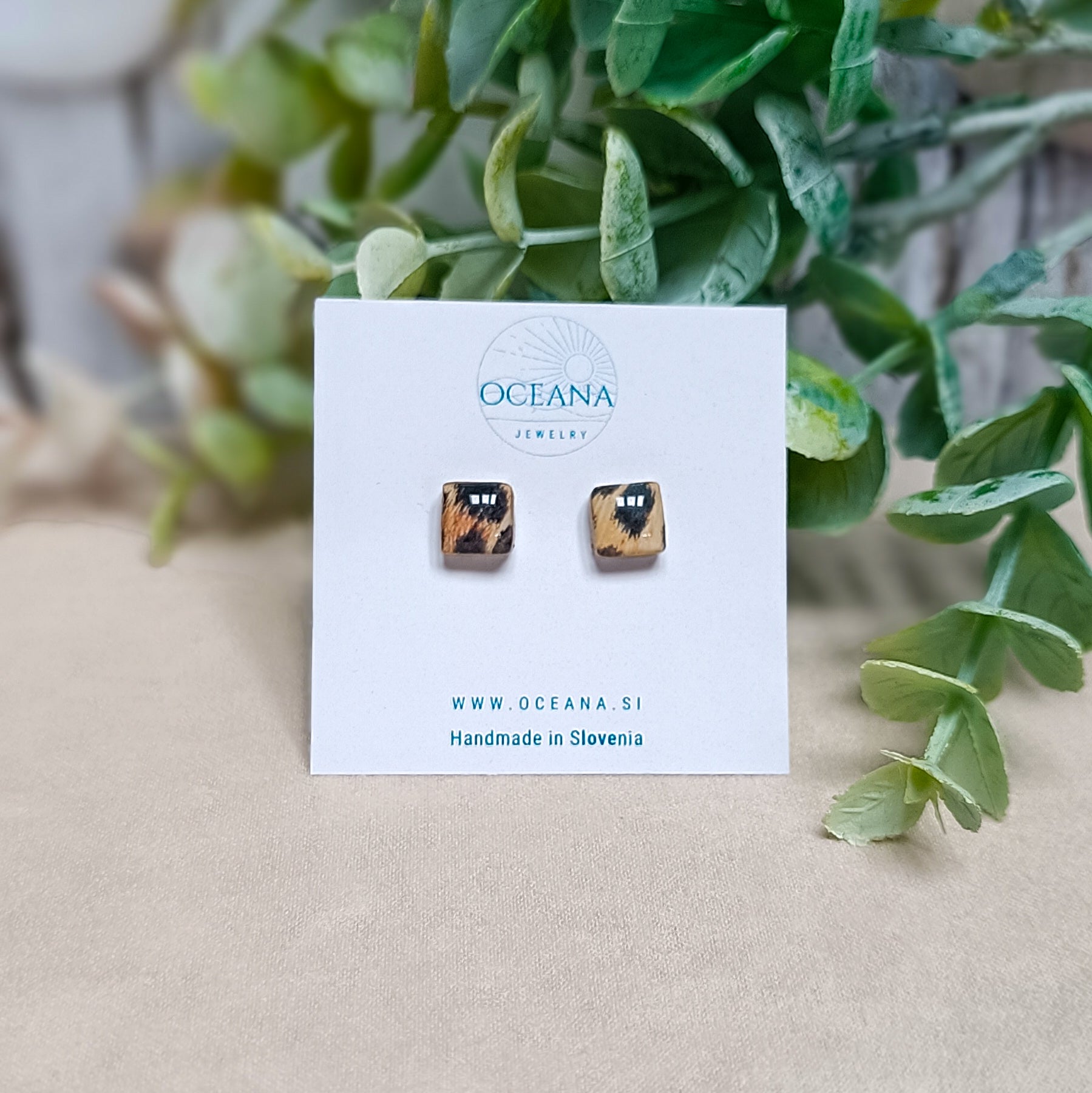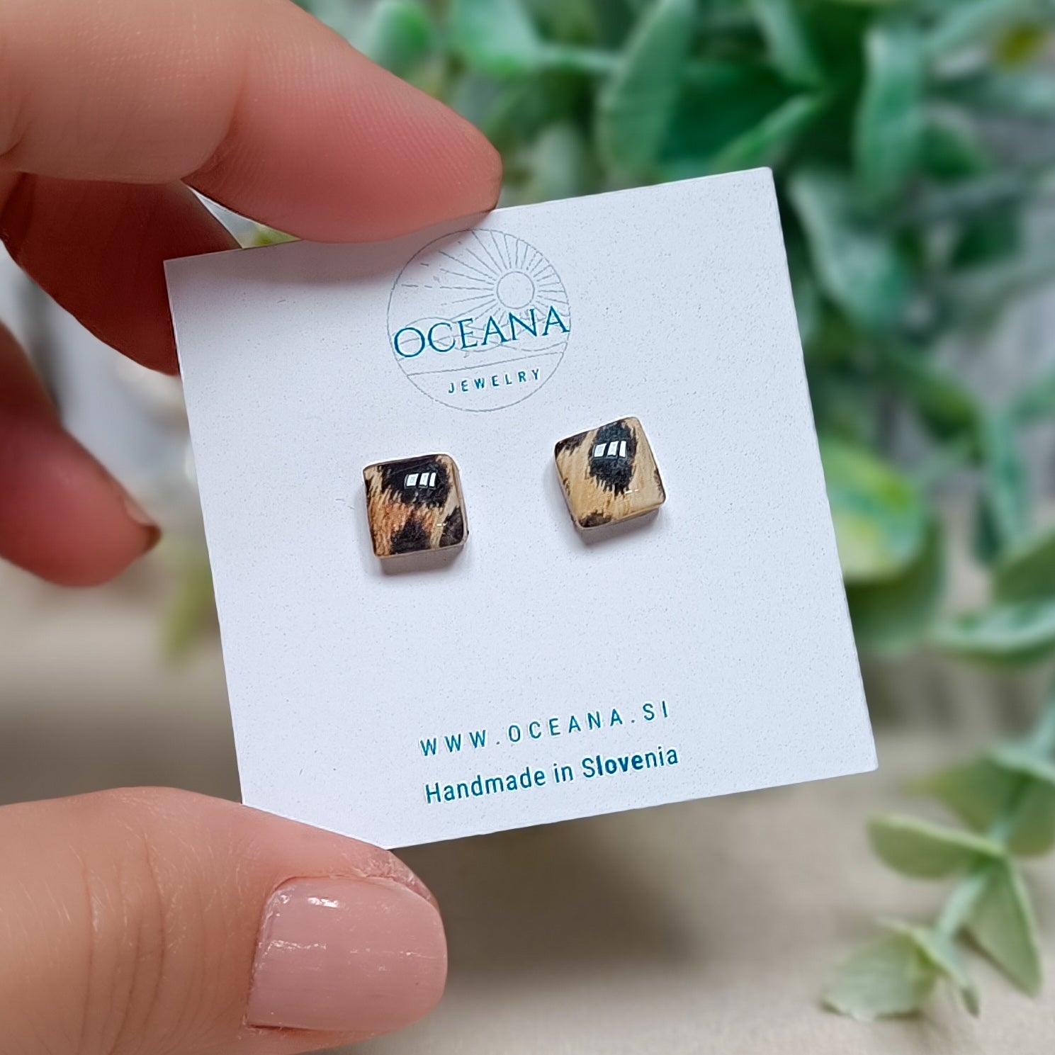Dodaj svojemu videzu kanček divje elegance z ročno izdelanimi uhani iz polimerne gline. Vsak par je skrbno oblikovan in prekrit z bleščečo plastjo smole za gladek in obstojen izgled.
