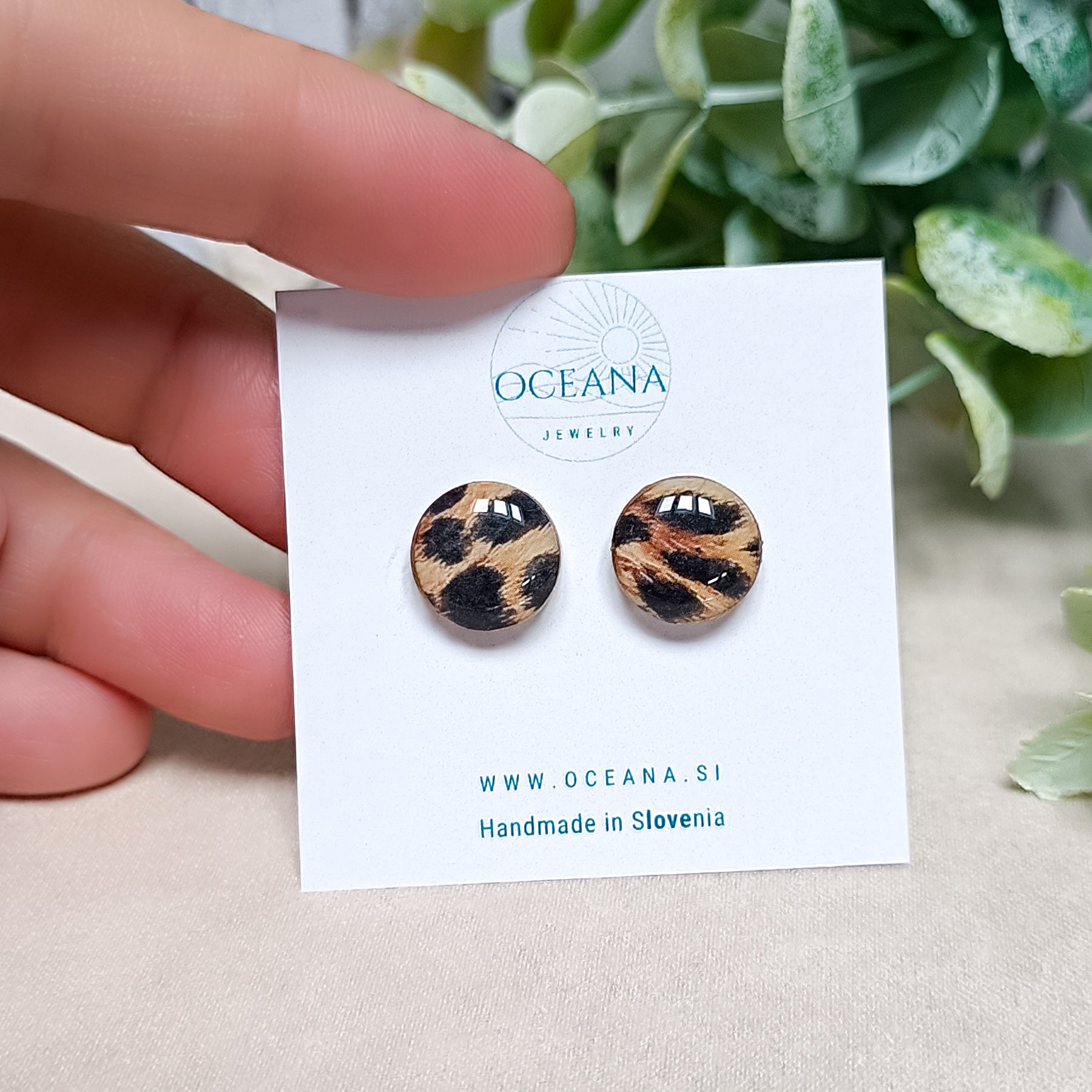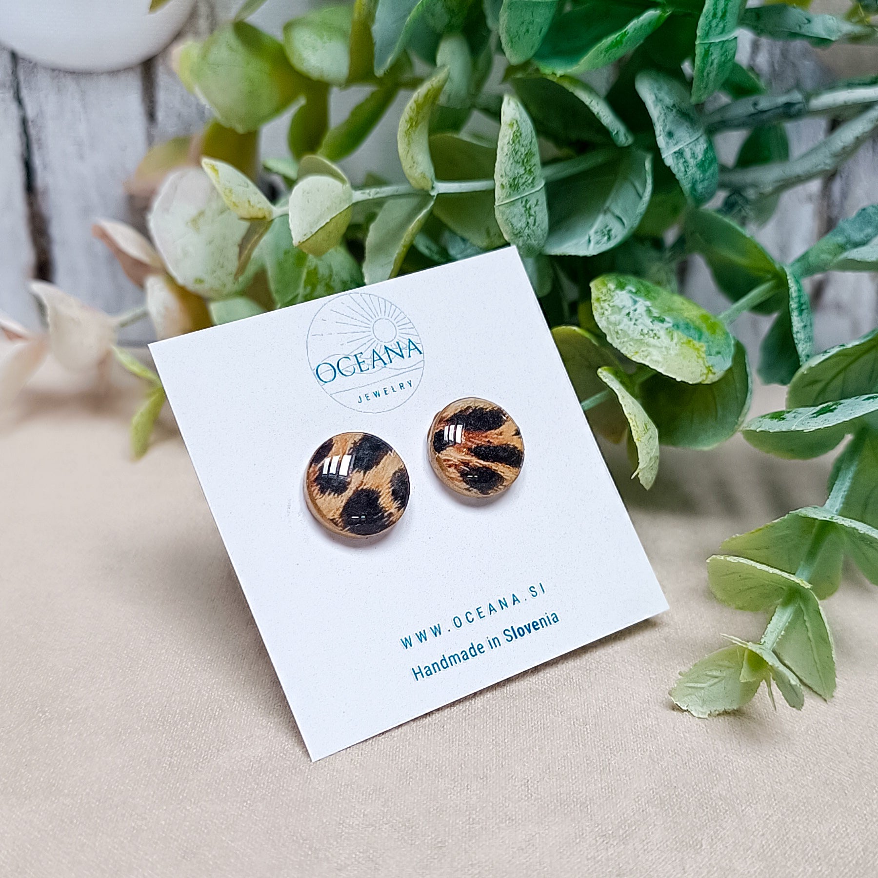 Dodaj svojemu videzu kanček divje elegance z ročno izdelanimi uhani iz polimerne gline. Vsak par je skrbno oblikovan in prekrit z bleščečo plastjo smole za gladek in obstojen izgled.