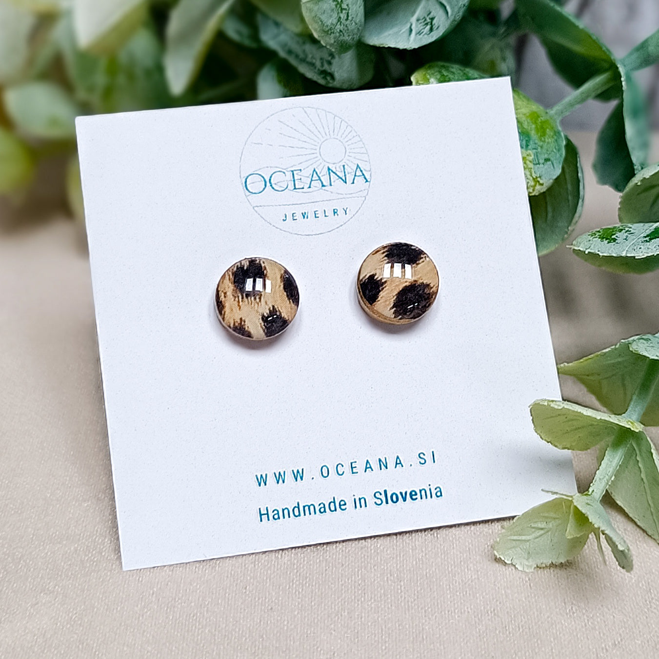 Dodaj svojemu videzu kanček divje elegance z ročno izdelanimi uhani iz polimerne gline. Vsak par je skrbno oblikovan in prekrit z bleščečo plastjo smole za gladek in obstojen izgled.