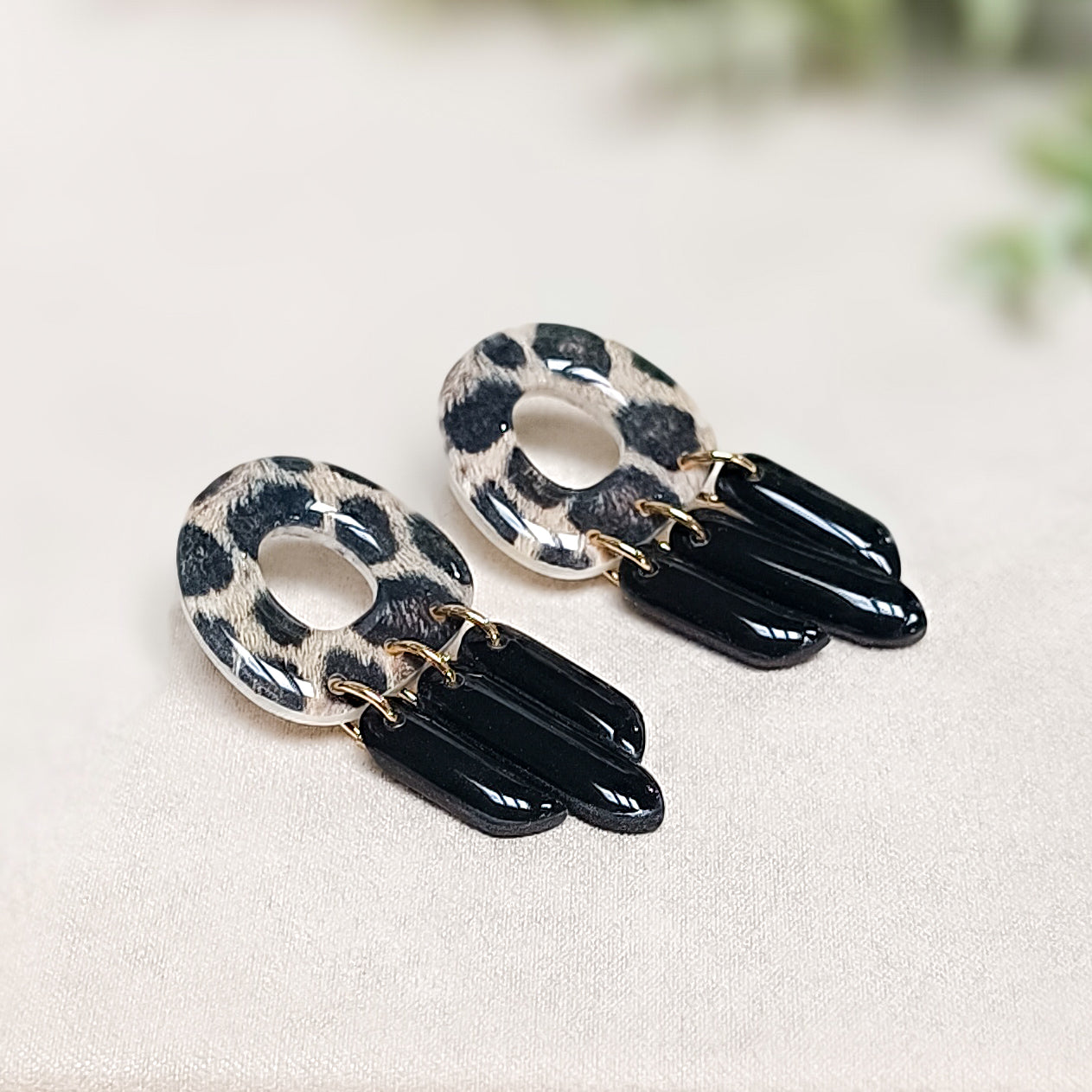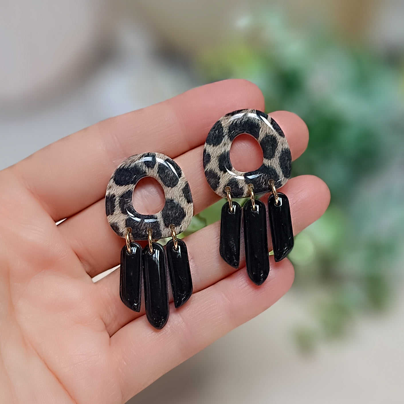 Add a touch of wild charm to your look with these handmade polymer clay earrings. Each pair is carefully crafted and covered with a glossy layer of resin for a smooth and long lasting finish.