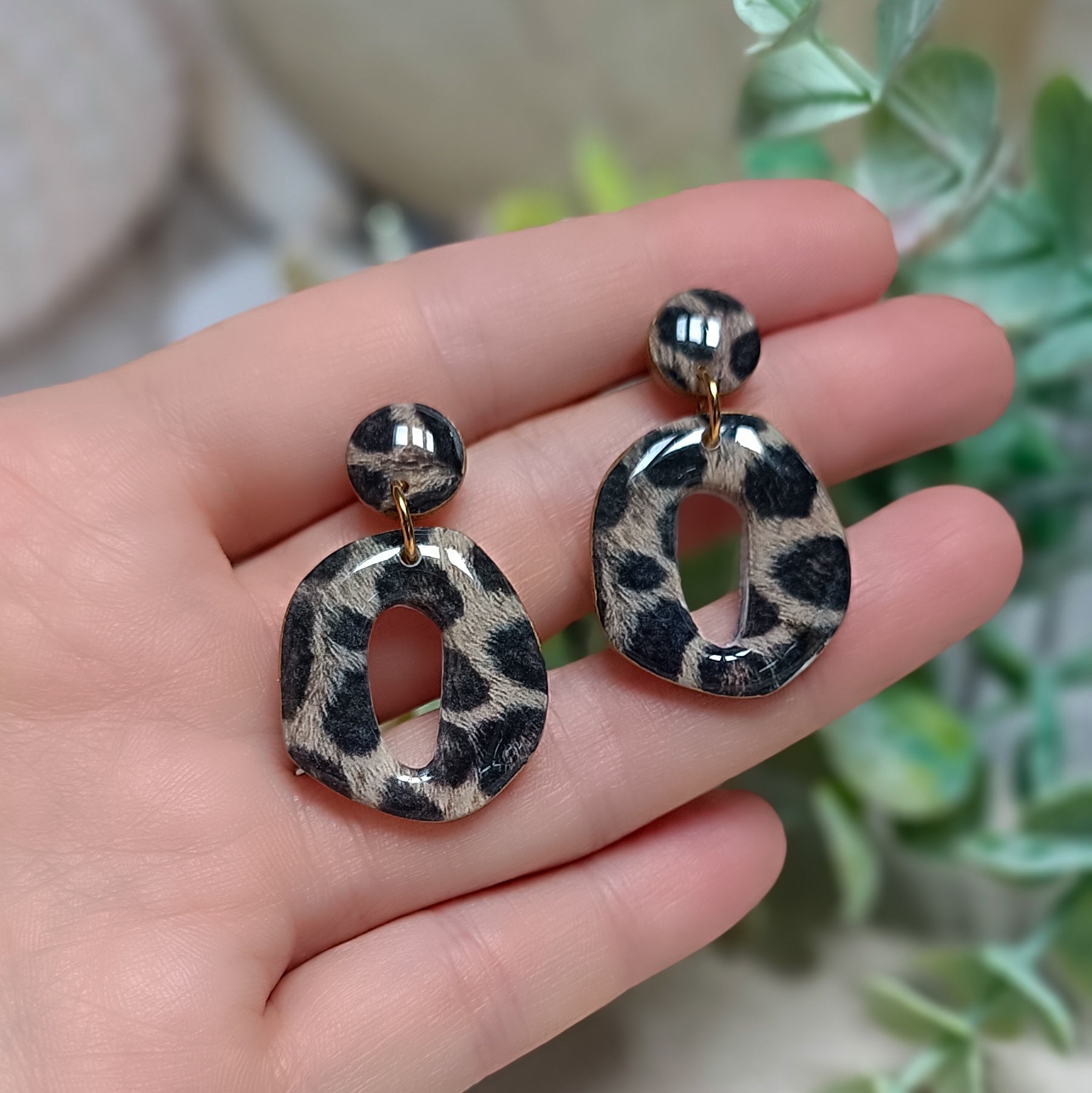 Add a touch of wild charm to your look with these handmade polymer clay earrings. Each pair is carefully crafted and covered with a glossy layer of resin for a smooth and long lasting finish.