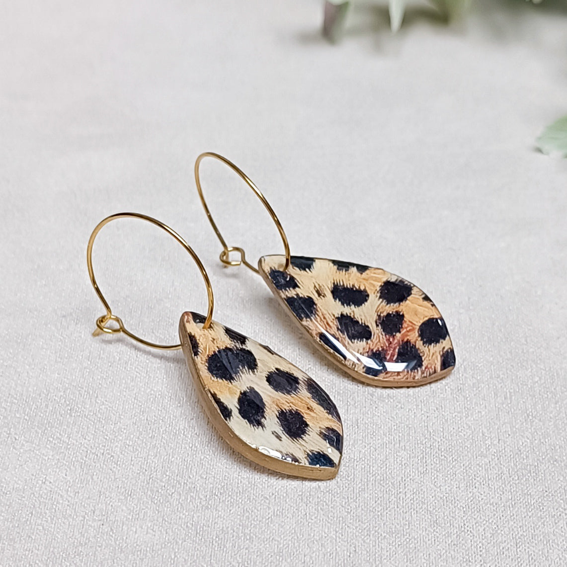 Add a touch of wild charm to your look with these handmade polymer clay earrings. Each pair is carefully crafted and covered with a glossy layer of resin for a smooth and long lasting finish.
