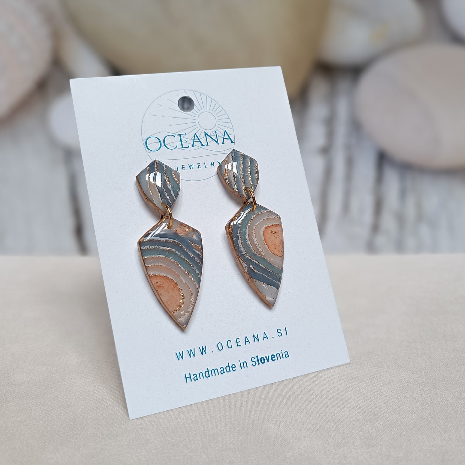 Earrings are made from high quality polymer clay, very lightweight, covered with a glossy resing finish for extra shine and durability. Posts are from surgical steel and are suitable even for sensitive ears.