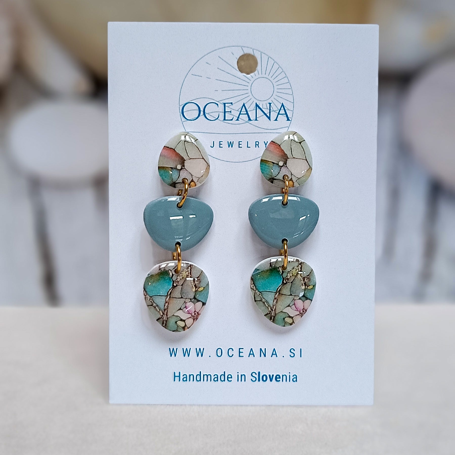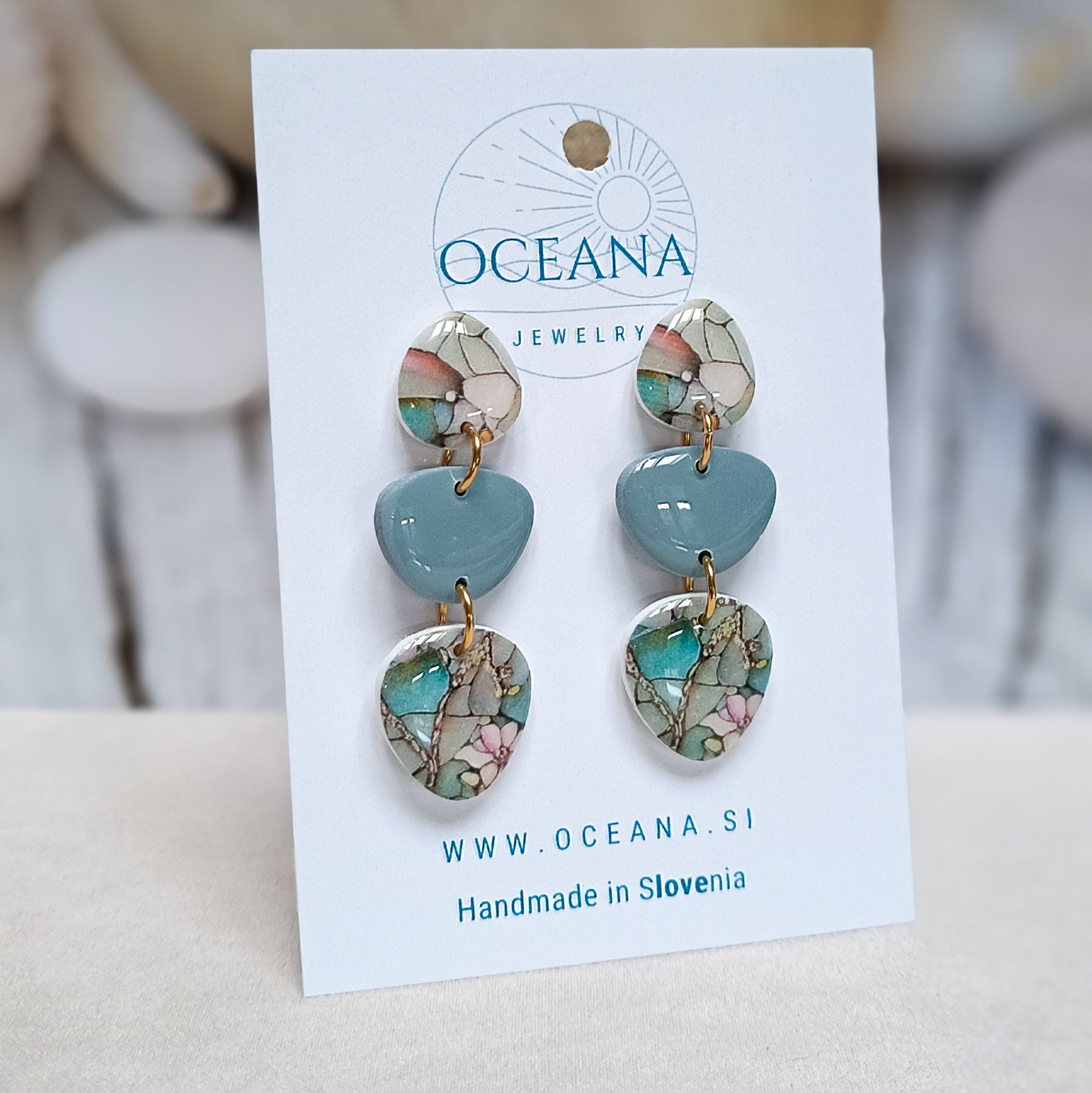 Ročno izdelani uhani iz polimerne gline, ki so prekriti z epoksi smolo za dodaten sijaj in zaščito, navdinjeni so z lepoto vitraža. Vsak kos ujame svetlobo na svoj način - kot majhno okence barv in duše. Zatič je iz kirurškega jekla za udobje. ž