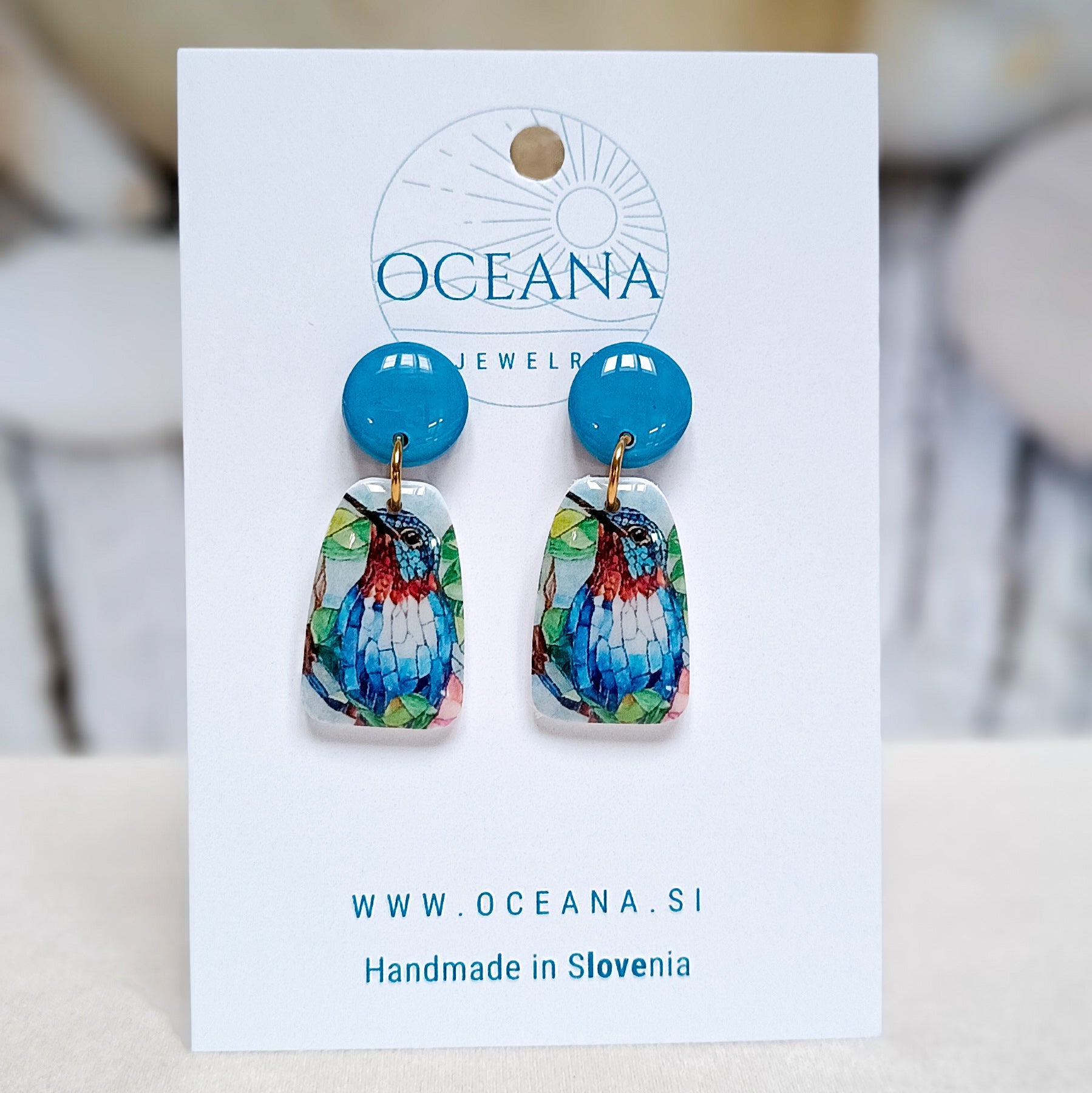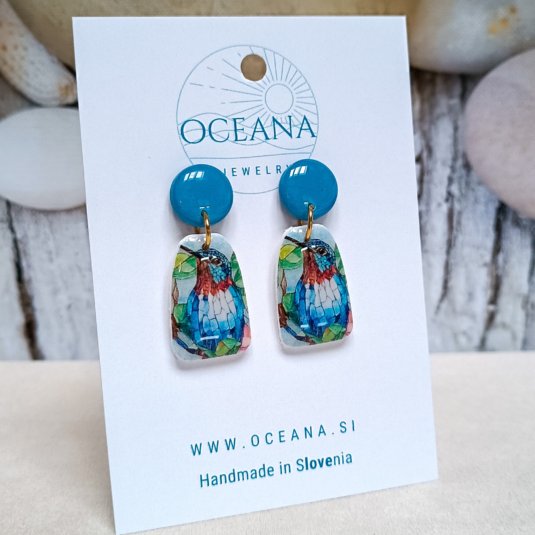 Ročno izdelani uhani iz polimerne gline, ki so prekriti z epoksi smolo za dodaten sijaj in zaščito, navdinjeni so z lepoto vitraža. Vsak kos ujame svetlobo na svoj način - kot majhno okence barv in duše. Zatič je iz kirurškega jekla za udobje. ž