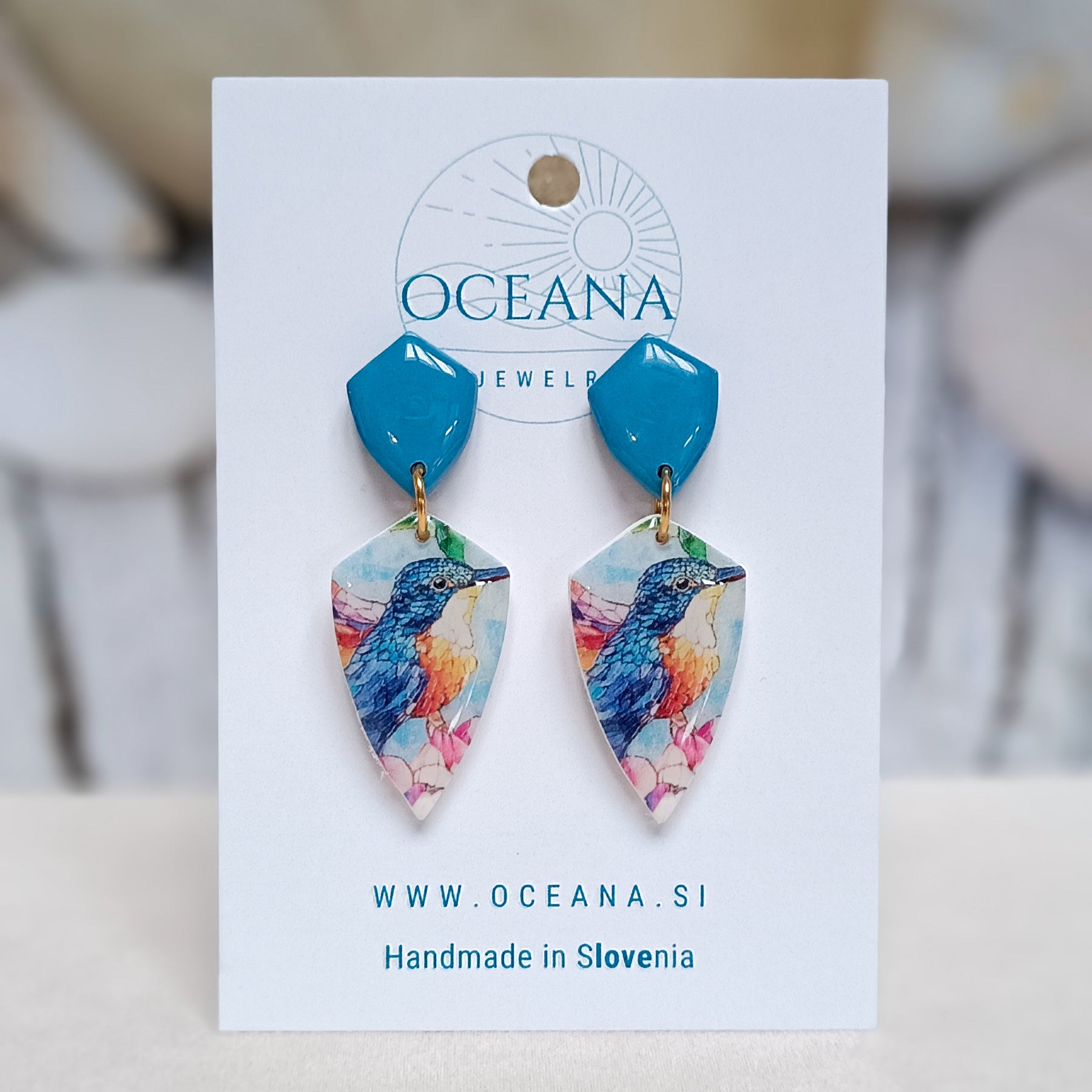 Ročno izdelani uhani iz polimerne gline, ki so prekriti z epoksi smolo za dodaten sijaj in zaščito, navdinjeni so z lepoto vitraža. Vsak kos ujame svetlobo na svoj način - kot majhno okence barv in duše. Zatič je iz kirurškega jekla za udobje. ž