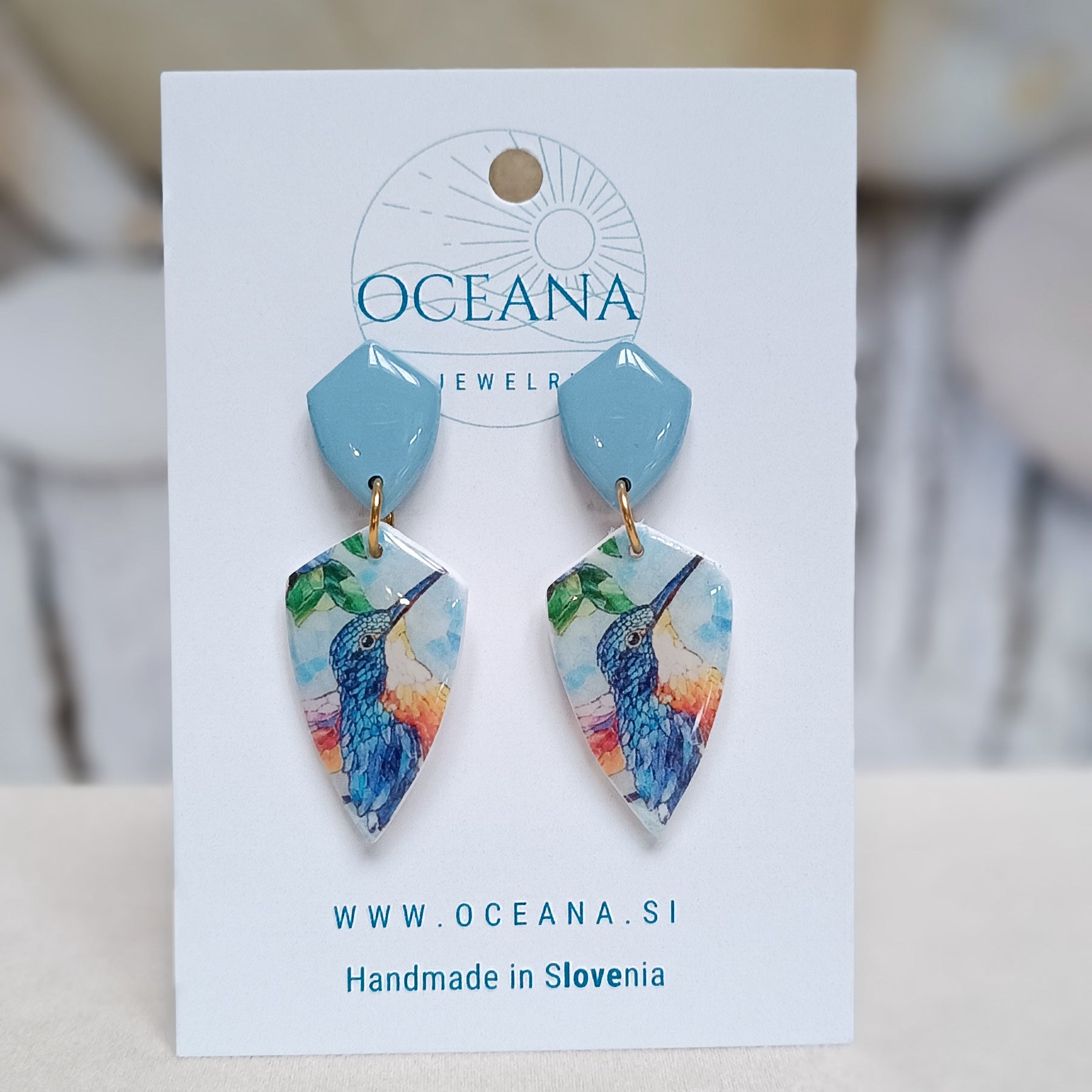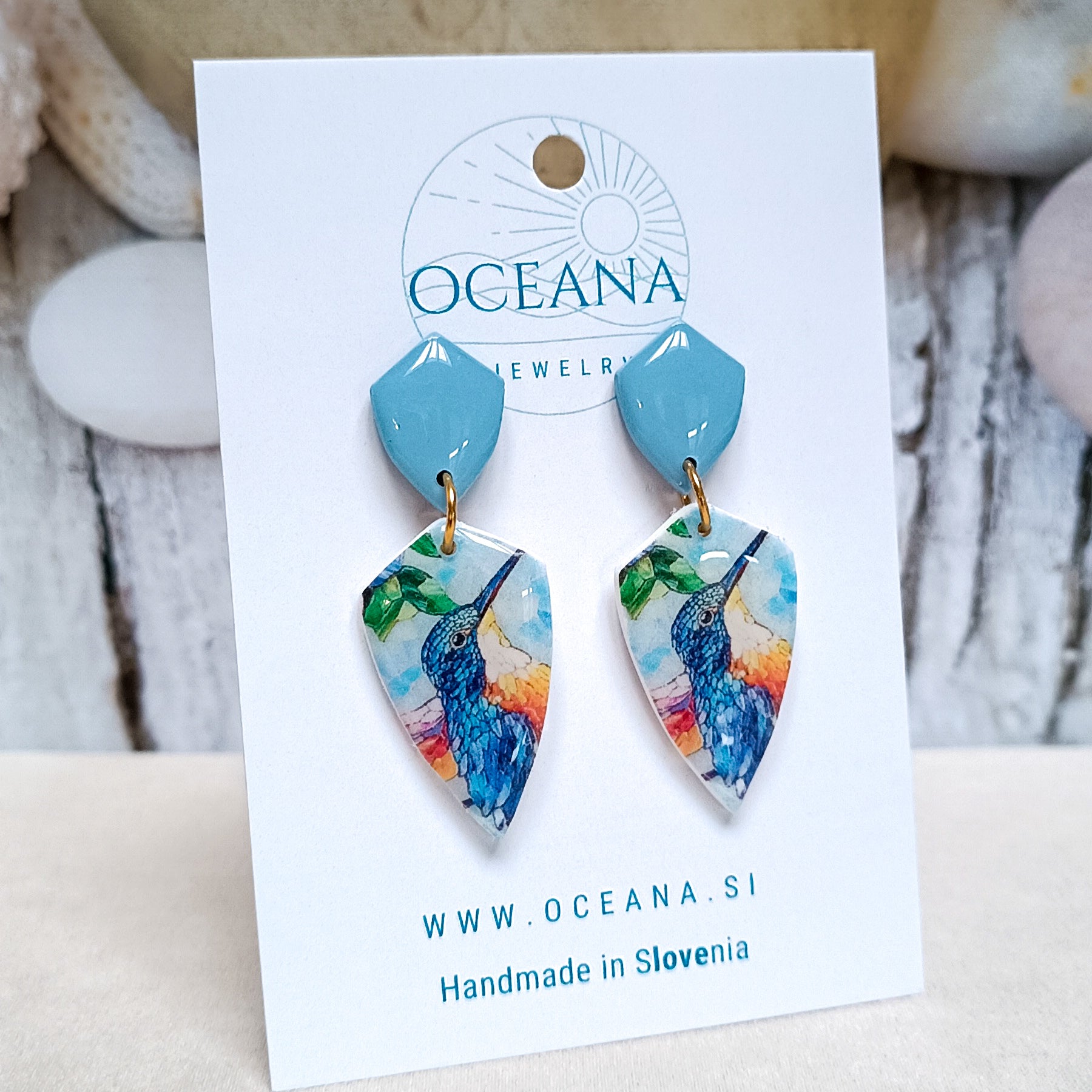 Ročno izdelani uhani iz polimerne gline, ki so prekriti z epoksi smolo za dodaten sijaj in zaščito, navdinjeni so z lepoto vitraža. Vsak kos ujame svetlobo na svoj način - kot majhno okence barv in duše. Zatič je iz kirurškega jekla za udobje. ž