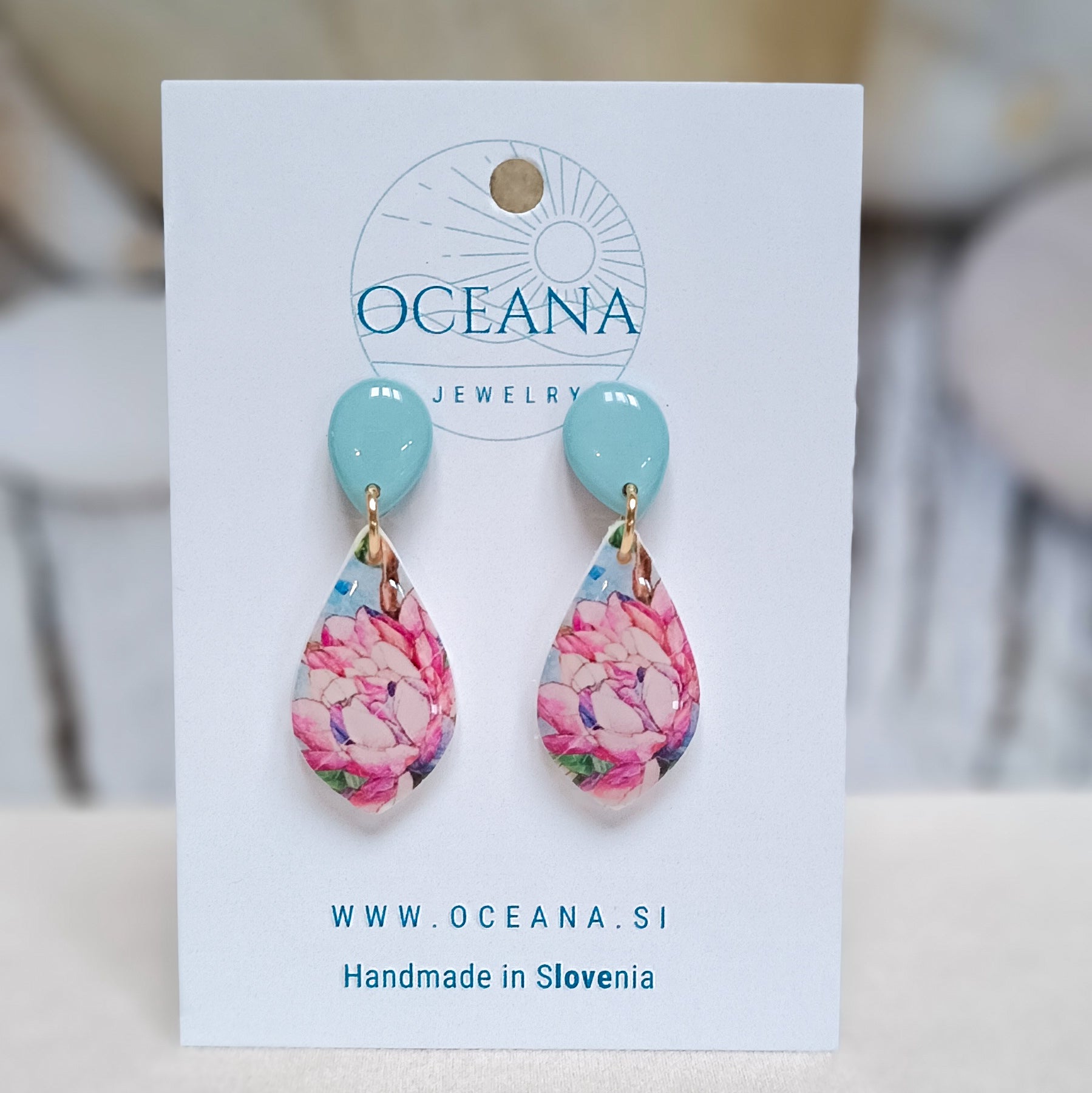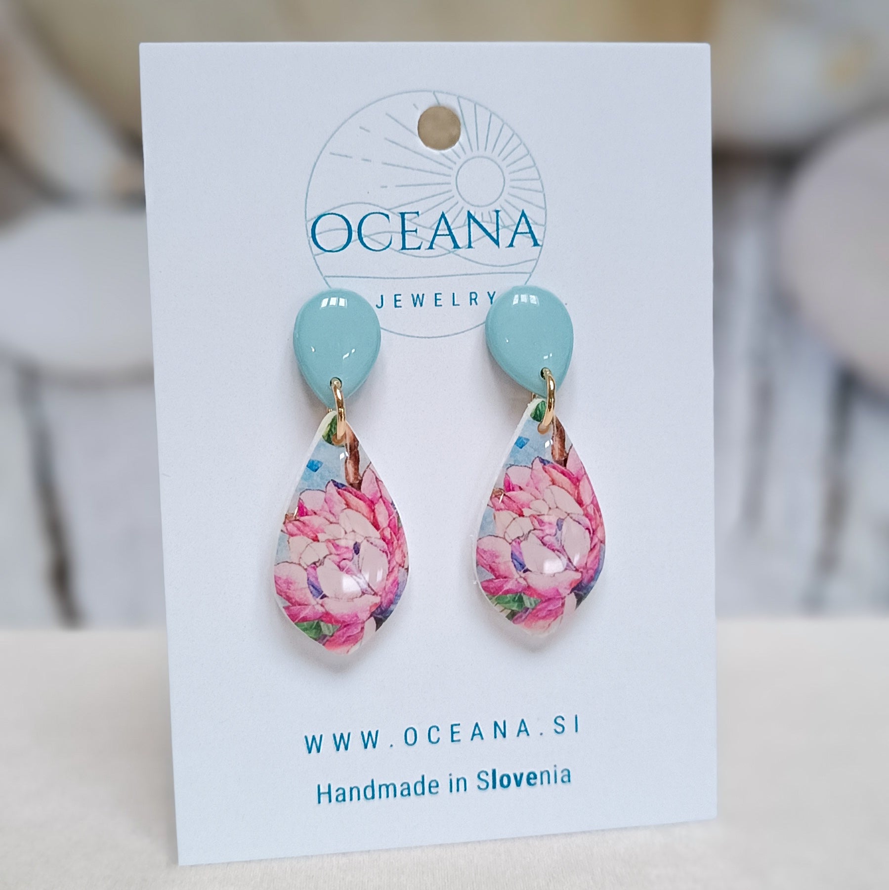 Ročno izdelani uhani iz polimerne gline, ki so prekriti z epoksi smolo za dodaten sijaj in zaščito, navdinjeni so z lepoto vitraža. Vsak kos ujame svetlobo na svoj način - kot majhno okence barv in duše. Zatič je iz kirurškega jekla za udobje. ž