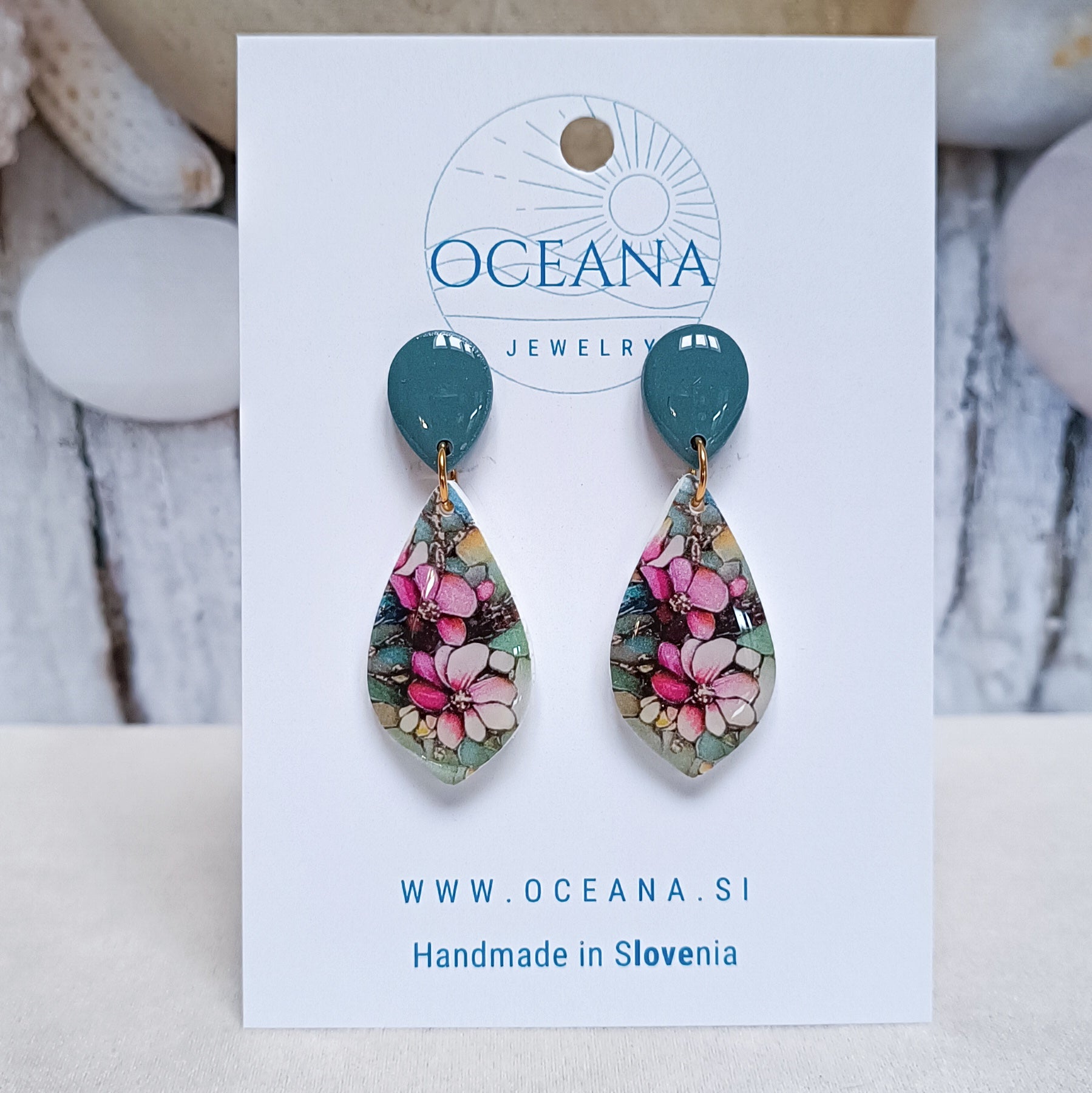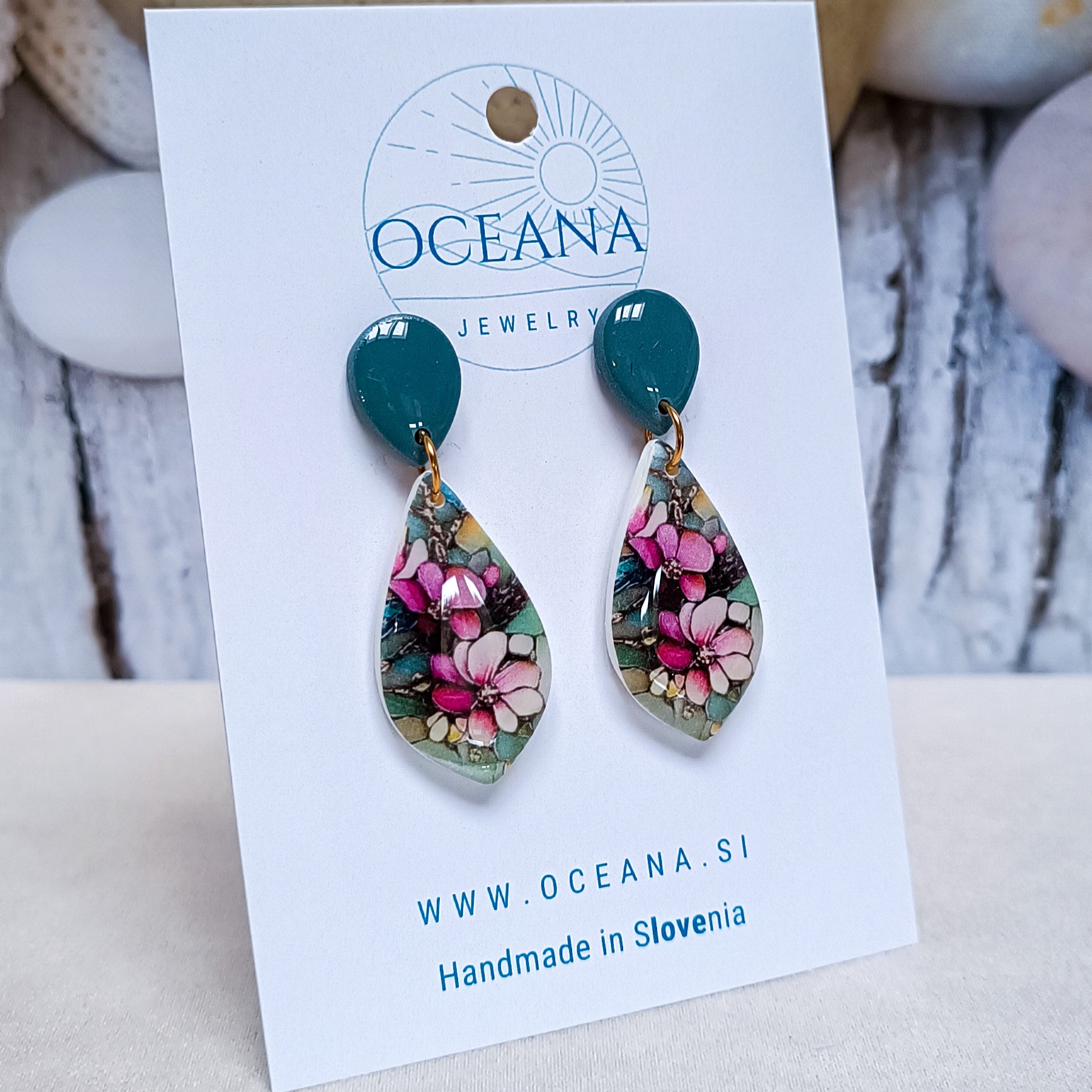 Ročno izdelani uhani iz polimerne gline, ki so prekriti z epoksi smolo za dodaten sijaj in zaščito, navdinjeni so z lepoto vitraža. Vsak kos ujame svetlobo na svoj način - kot majhno okence barv in duše. Zatič je iz kirurškega jekla za udobje. ž