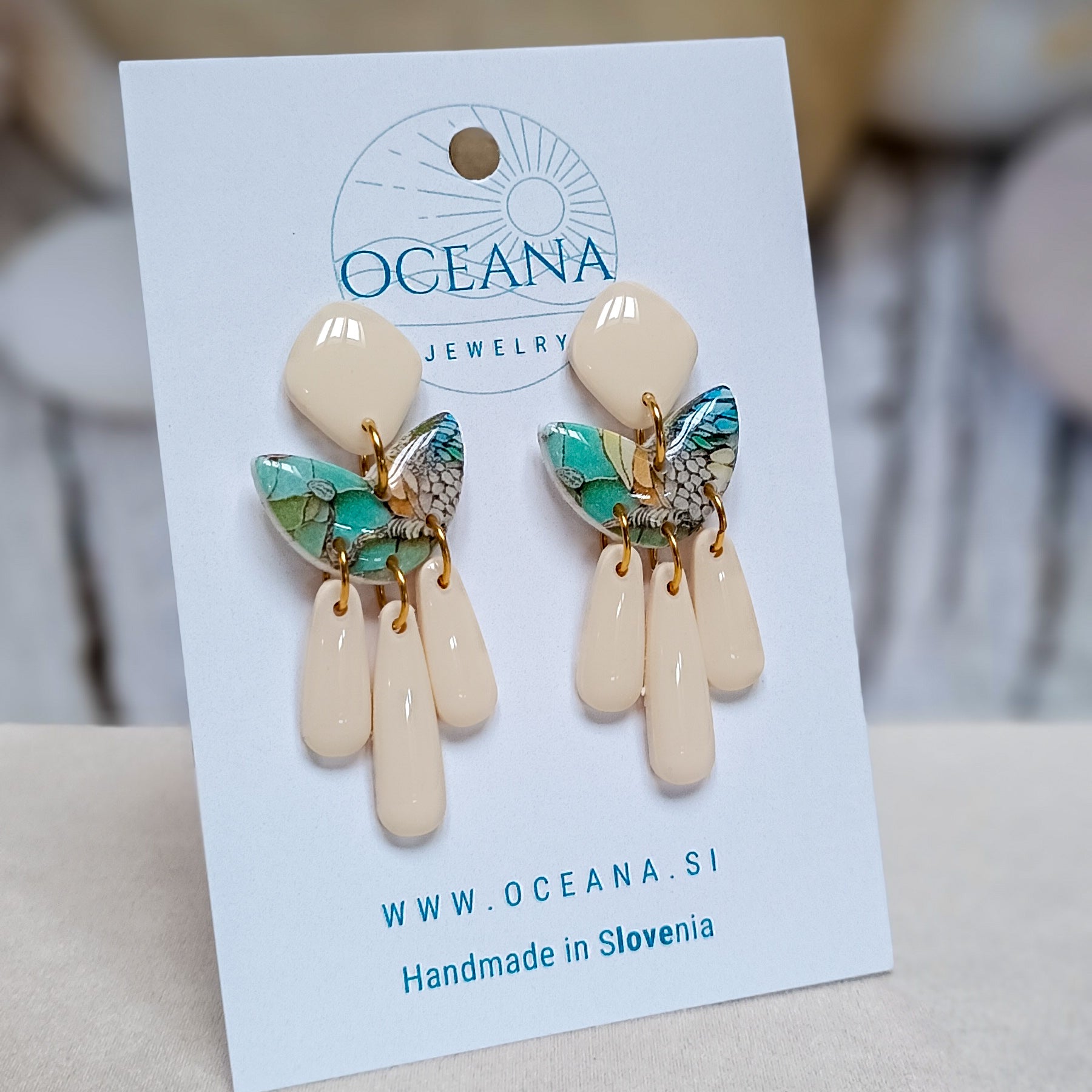 Ročno izdelani uhani iz polimerne gline, ki so prekriti z epoksi smolo za dodaten sijaj in zaščito, navdinjeni so z lepoto vitraža. Vsak kos ujame svetlobo na svoj način - kot majhno okence barv in duše. Zatič je iz kirurškega jekla za udobje. ž