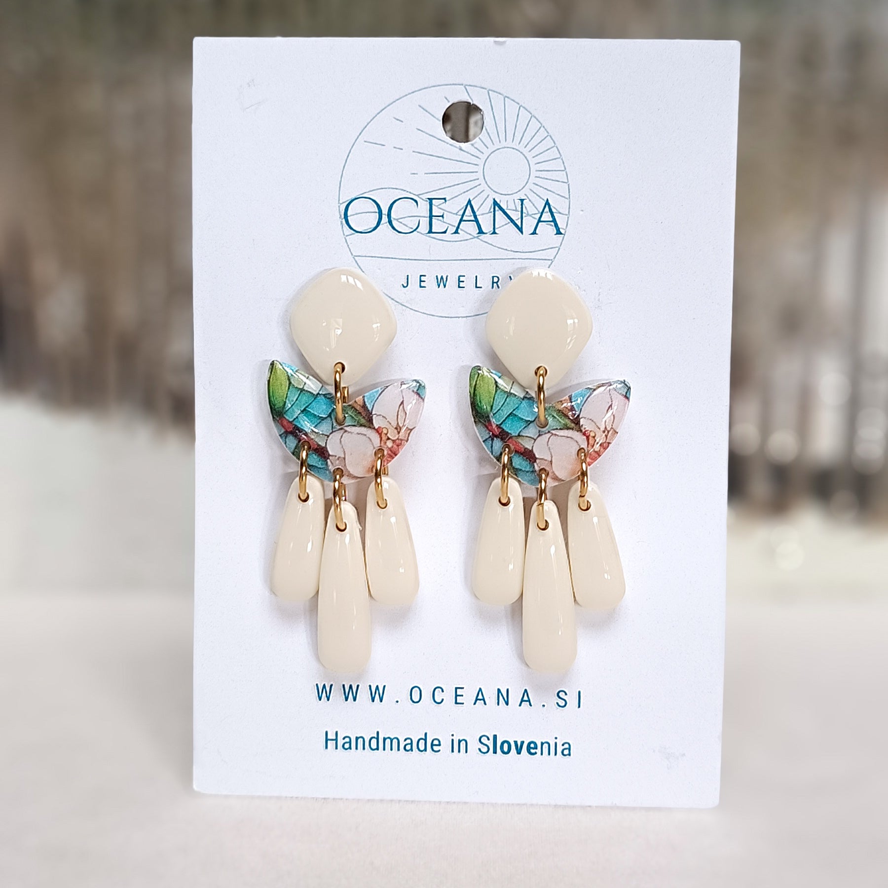 Ročno izdelani uhani iz polimerne gline, ki so prekriti z epoksi smolo za dodaten sijaj in zaščito, navdinjeni so z lepoto vitraža. Vsak kos ujame svetlobo na svoj način - kot majhno okence barv in duše. Zatič je iz kirurškega jekla za udobje. ž