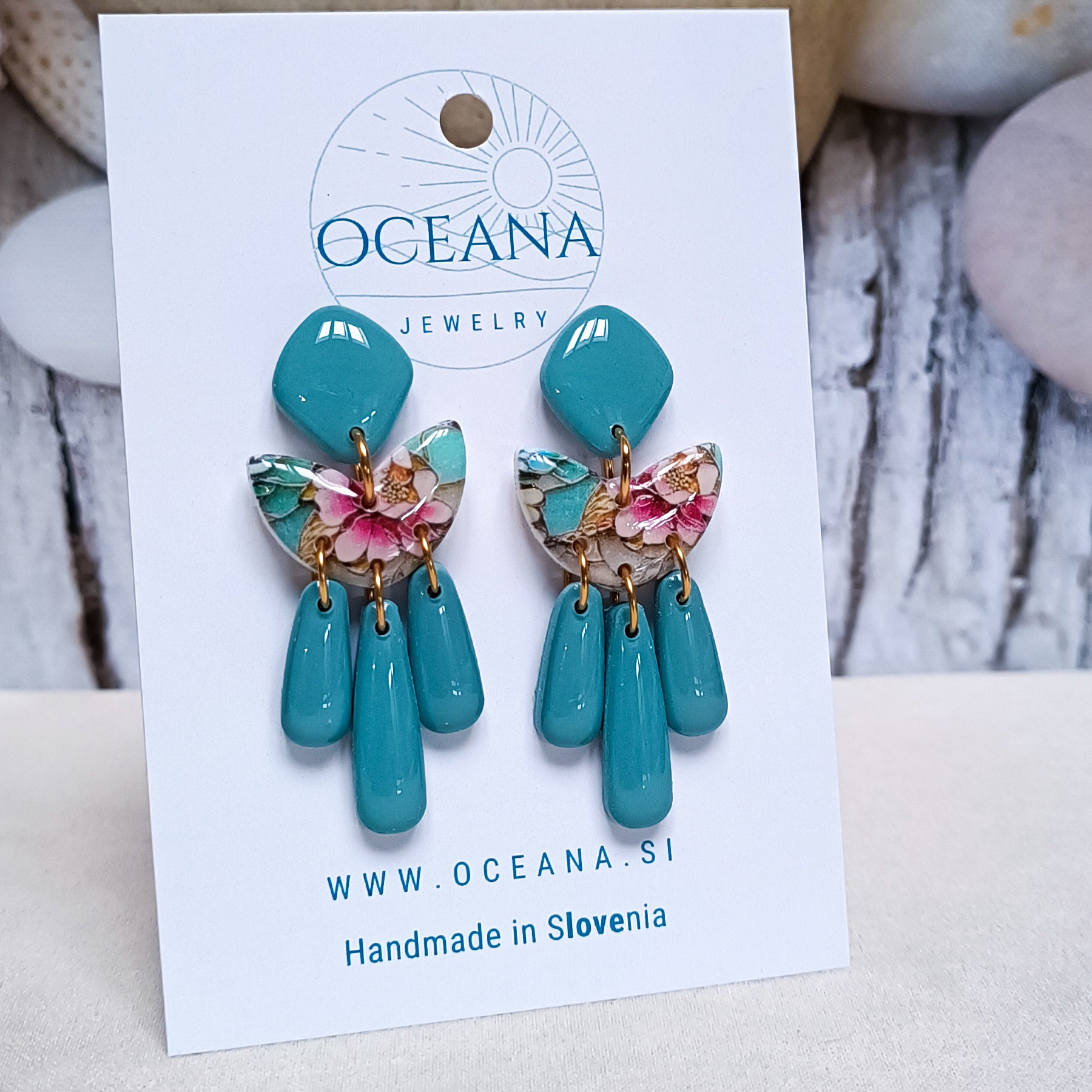 Ročno izdelani uhani iz polimerne gline, ki so prekriti z epoksi smolo za dodaten sijaj in zaščito, navdinjeni so z lepoto vitraža. Vsak kos ujame svetlobo na svoj način - kot majhno okence barv in duše. Zatič je iz kirurškega jekla za udobje. ž