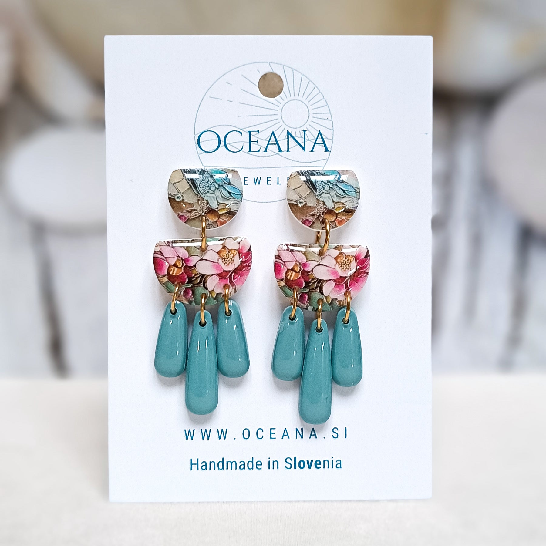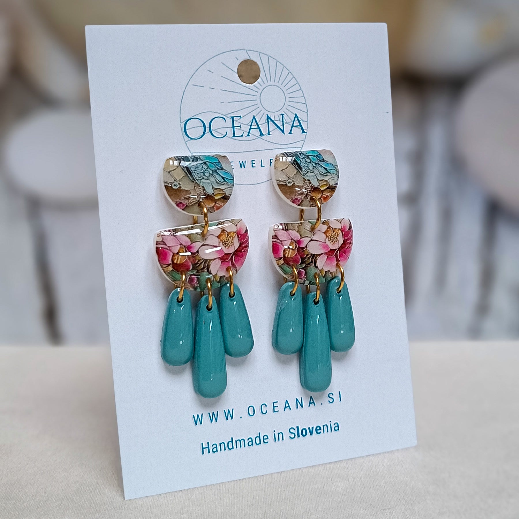 Ročno izdelani uhani iz polimerne gline, ki so prekriti z epoksi smolo za dodaten sijaj in zaščito, navdinjeni so z lepoto vitraža. Vsak kos ujame svetlobo na svoj način - kot majhno okence barv in duše. Zatič je iz kirurškega jekla za udobje. ž