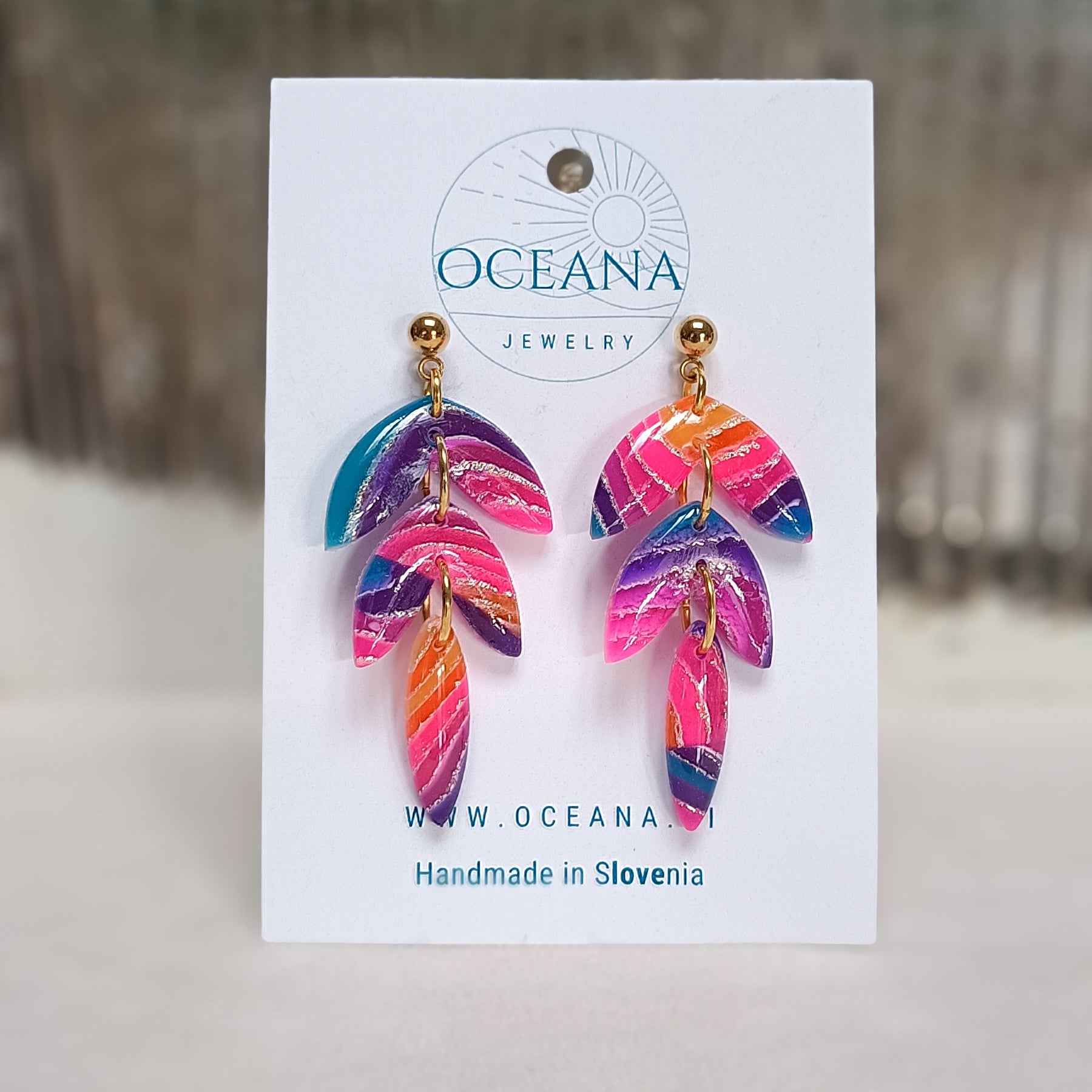 Elegantni uhani iz polimerne gline, ki posnemajo lepoto kamna in marmorja. Zaključeni so z gladkim smolnim premazom, material je iz nerjavečega jekla.. Ti uhani so izredno lahki in zato primerni za celodnevno nošenje.