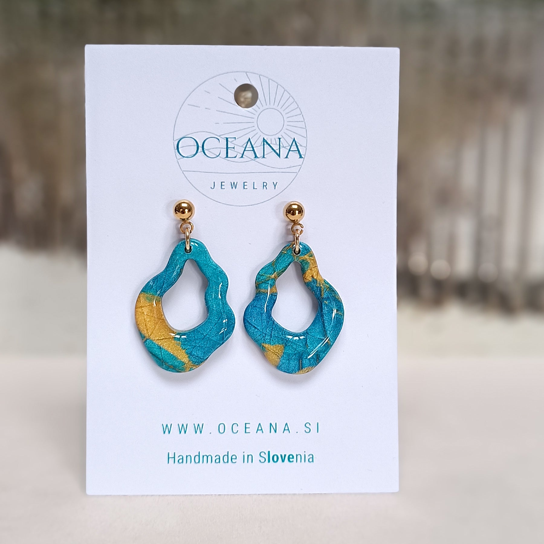 Elegantni uhani iz polimerne gline, ki posnemajo lepoto kamna in marmorja. Zaključeni so z gladkim smolnim premazom, material je iz nerjavečega jekla.. Ti uhani so izredno lahki in zato primerni za celodnevno nošenje.