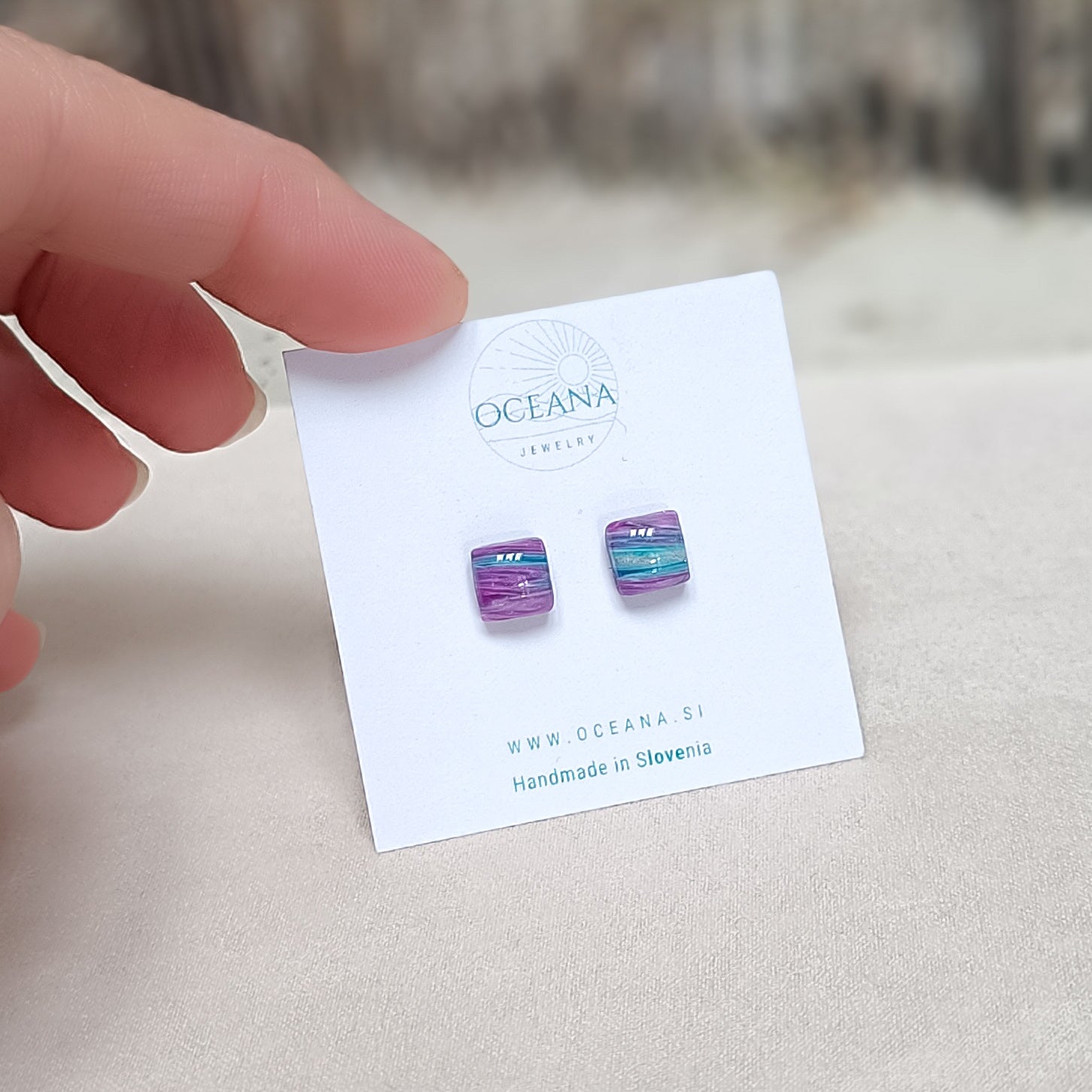 Elegant polymer clay earrings that mimic the beauty of stone and marble. They are finished with a smooth resin coating and studs are surgical steel and hypoallergenic. These lightweight earring offer both style and durability.