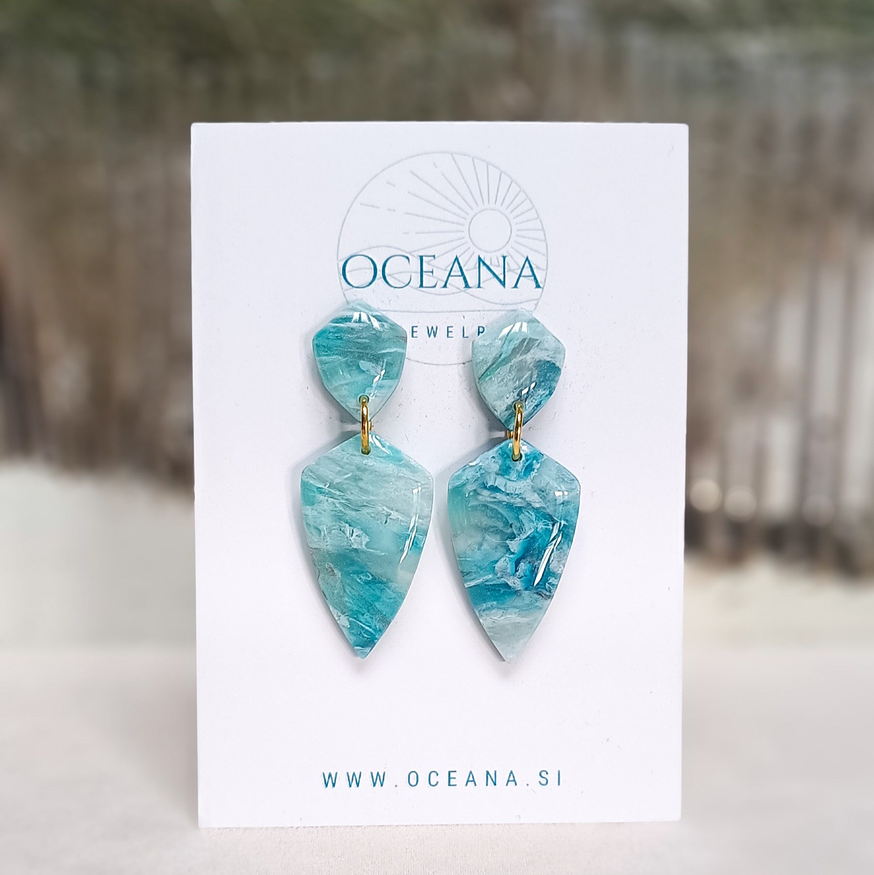 Elegantni uhani iz polimerne gline, ki posnemajo lepoto kamna in marmorja. Zaključeni so z gladkim smolnim premazom, material je iz kirurškega jekla in je primeren tudi za občutljiva ušesa. Ti uhani so izredno lahki in zato primerni za celodnevno nošenje.