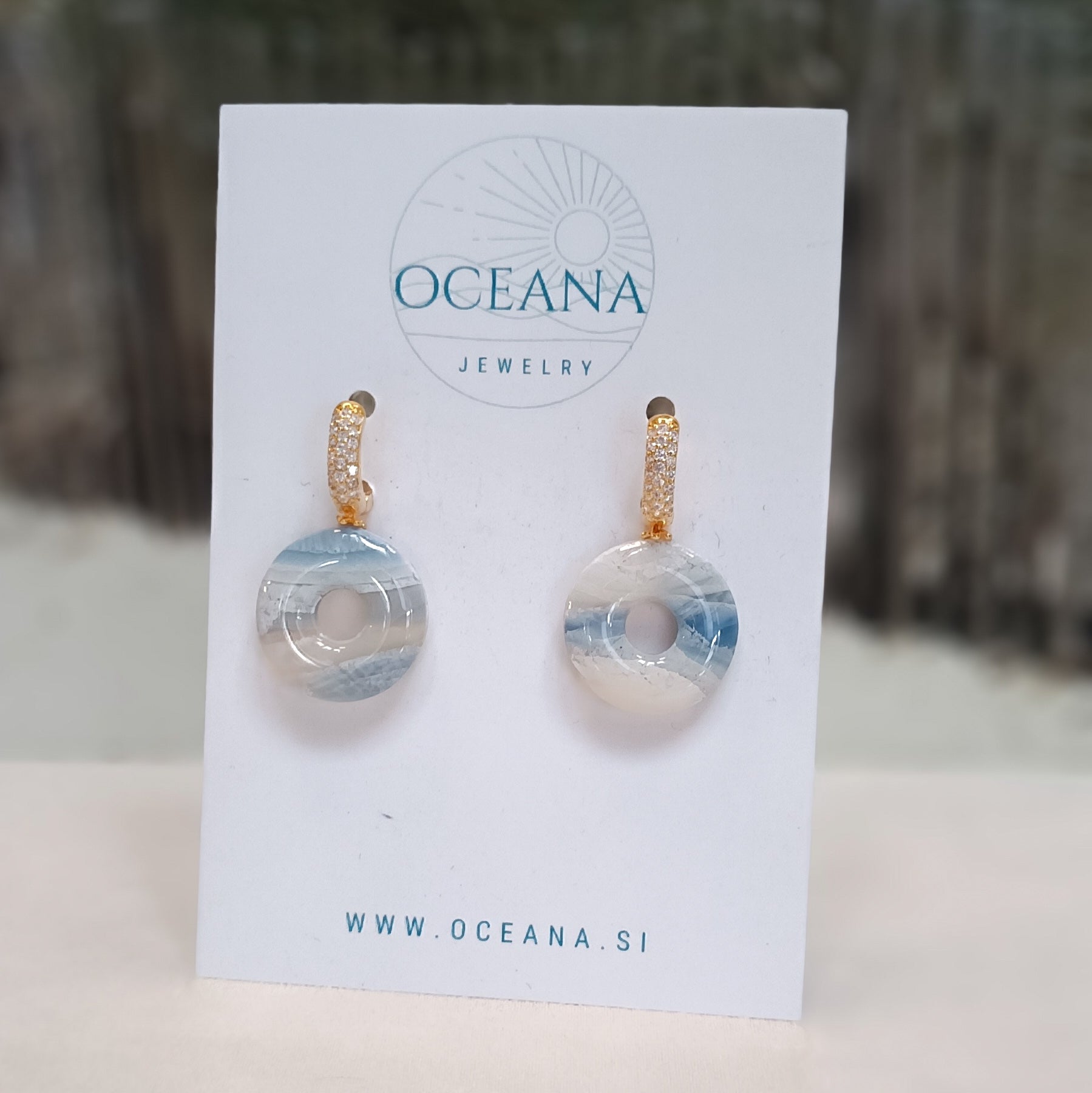 Elegantni uhani iz polimerne gline, ki posnemajo lepoto kamna in marmorja. Zaključeni so z gladkim smolnim premazom, material je iz pozlate. Ti uhani so izredno lahki in zato primerni za celodnevno nošenje.