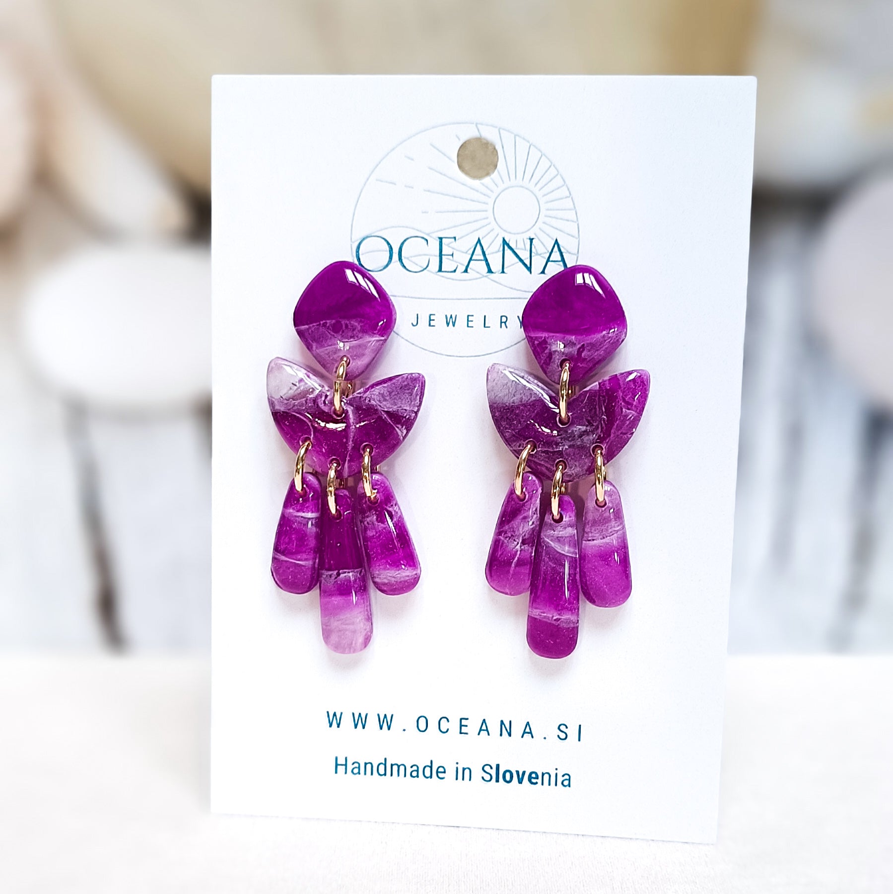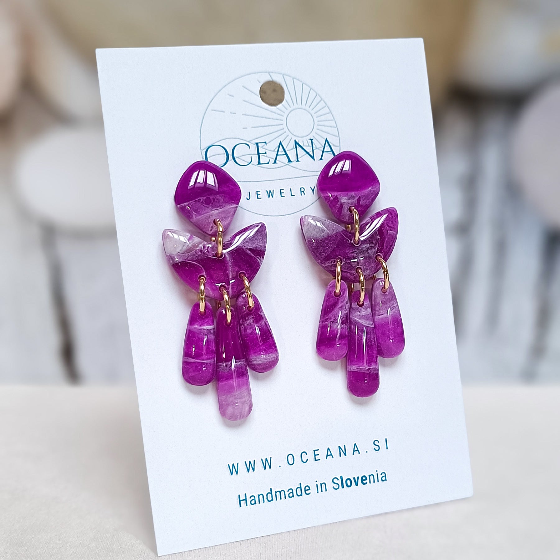 Elegantni uhani iz polimerne gline, ki posnemajo lepoto kamna in marmorja. Zaključeni so z gladkim smolnim premazom, material je iz kirurškega jekla in je primeren tudi za občutljiva ušesa. Ti uhani so izredno lahki in zato primerni za celodnevno nošenje.