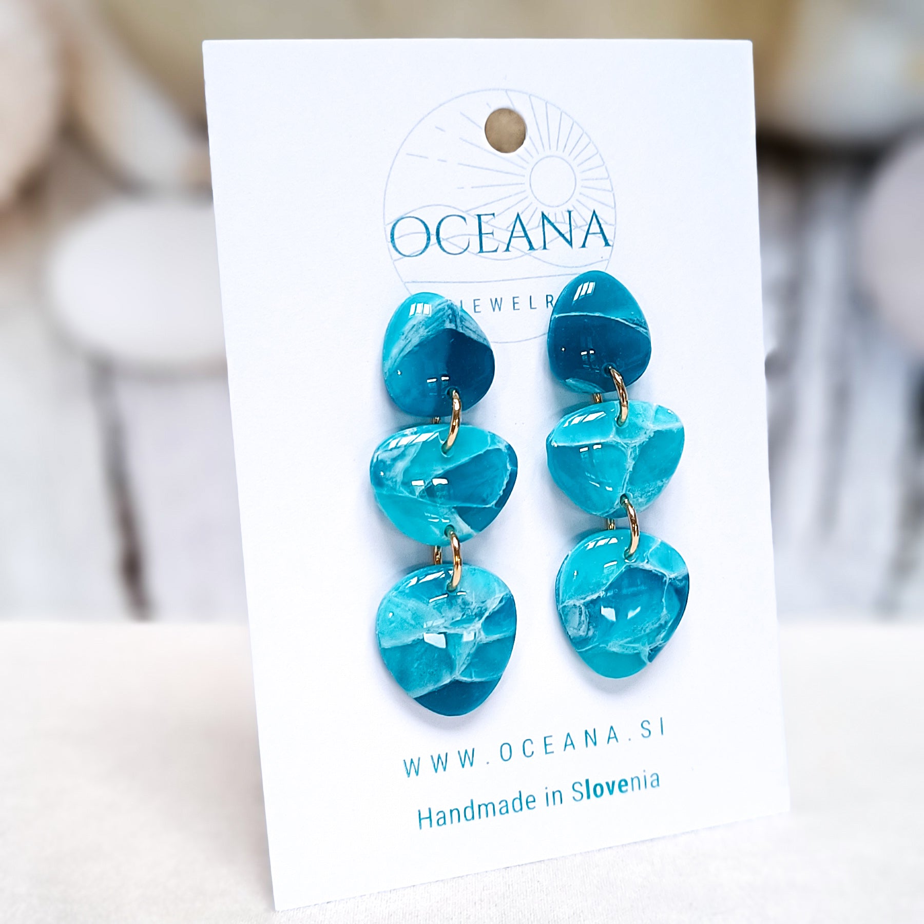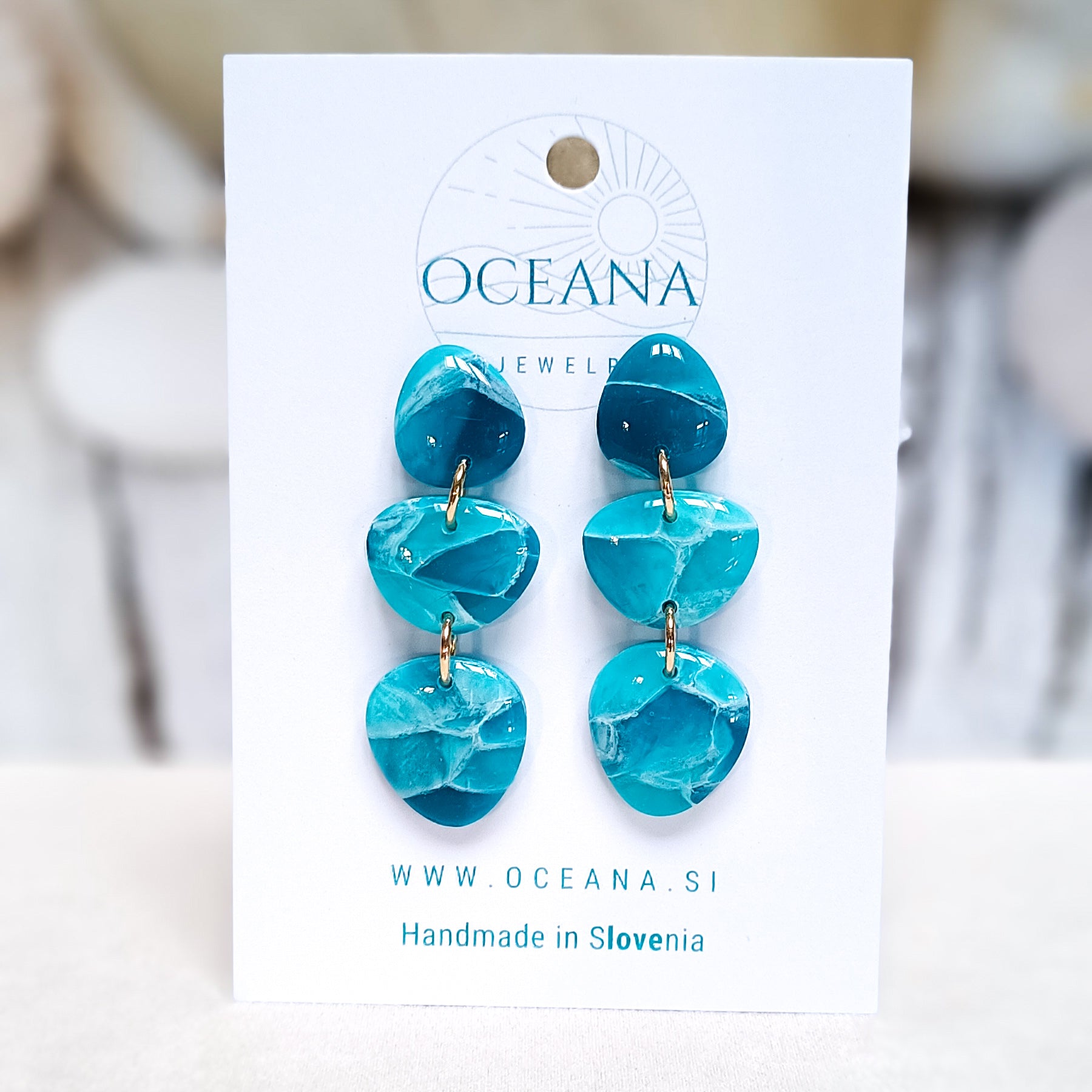 Elegantni uhani iz polimerne gline, ki posnemajo lepoto kamna in marmorja. Zaključeni so z gladkim smolnim premazom, material je iz kirurškega jekla in je primeren tudi za občutljiva ušesa. Ti uhani so izredno lahki in zato primerni za celodnevno nošenje.