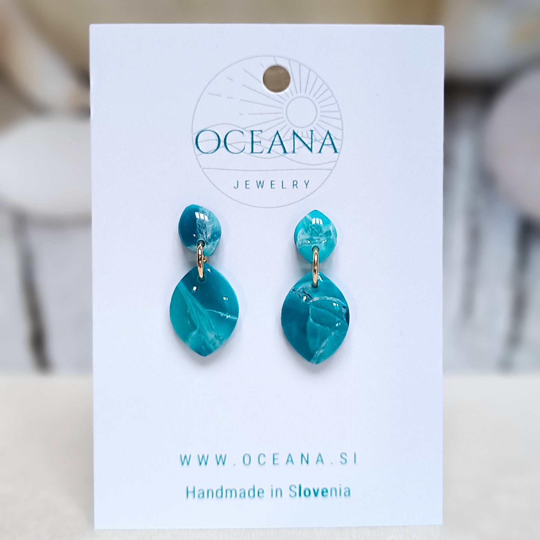 Elegantni uhani iz polimerne gline, ki posnemajo lepoto kamna in marmorja. Zaključeni so z gladkim smolnim premazom, material je iz kirurškega jekla in je primeren tudi za občutljiva ušesa. Ti uhani so izredno lahki in zato primerni za celodnevno nošenje.