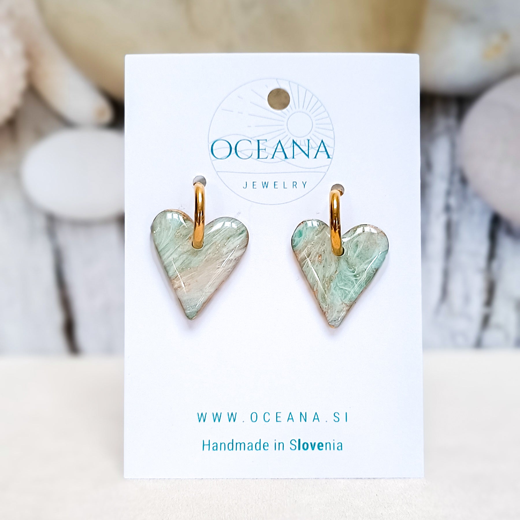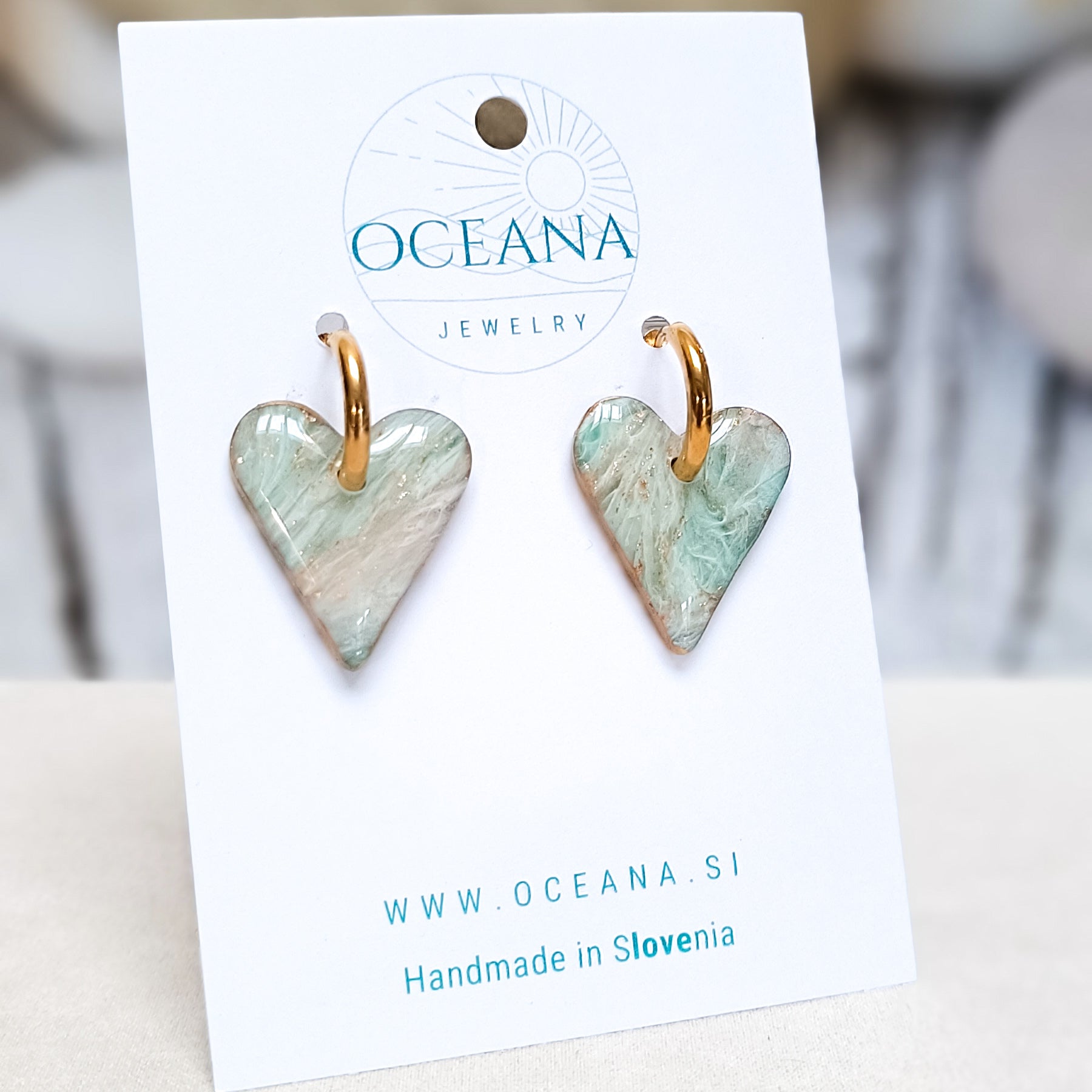 Elegantni uhani iz polimerne gline, ki posnemajo lepoto kamna in marmorja. Zaključeni so z gladkim smolnim premazom, material je iz nerjavečega jekla in je primeren tudi za občutljiva ušesa. Ti uhani so izredno lahki in zato primerni za celodnevno nošenje.
